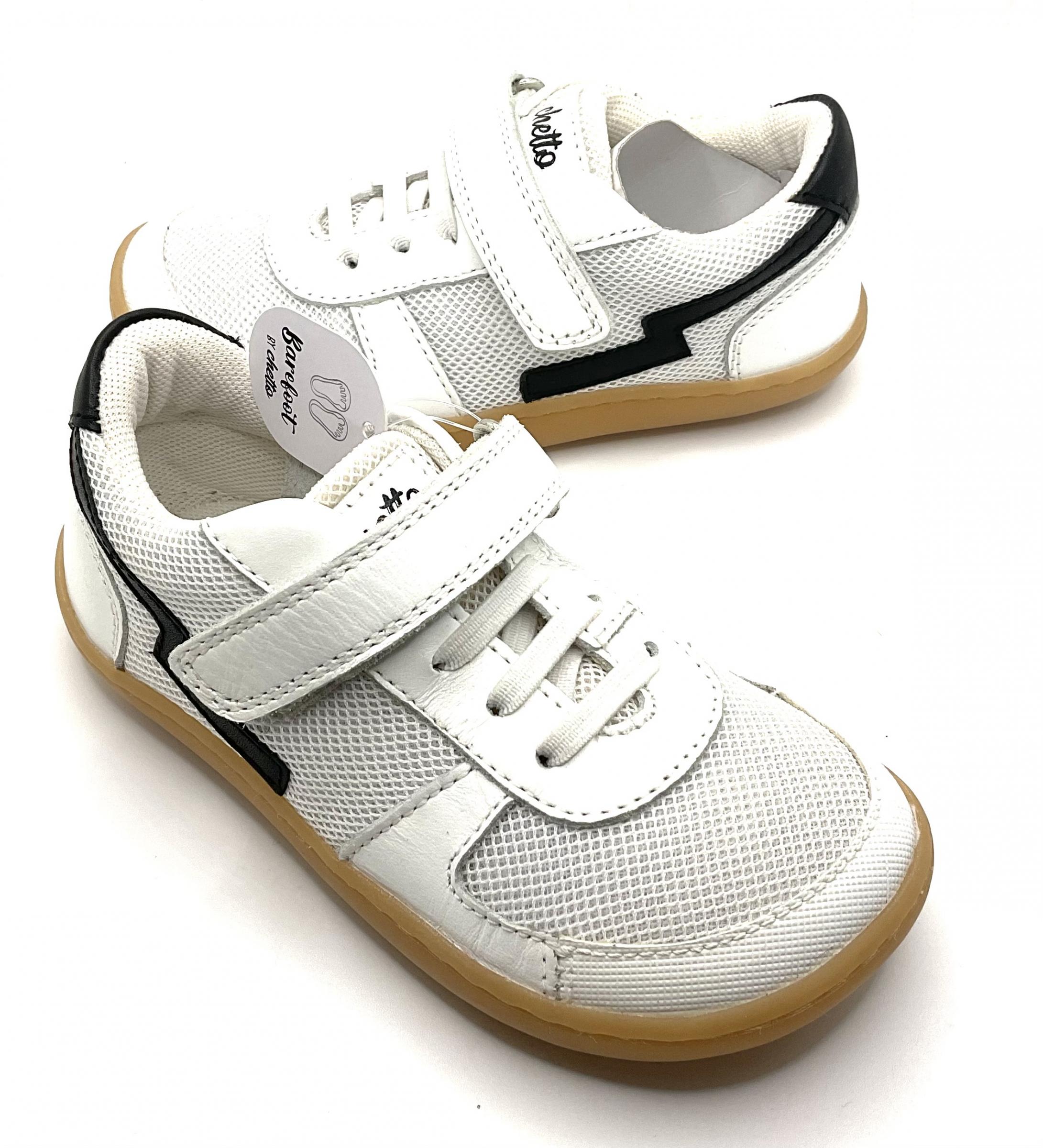 Deportivo de la marca Cheto en blanco con adornos en negro. Horma Barefoot, ligera y flexible.