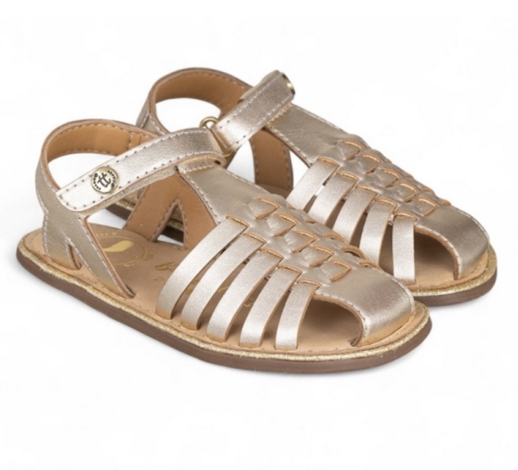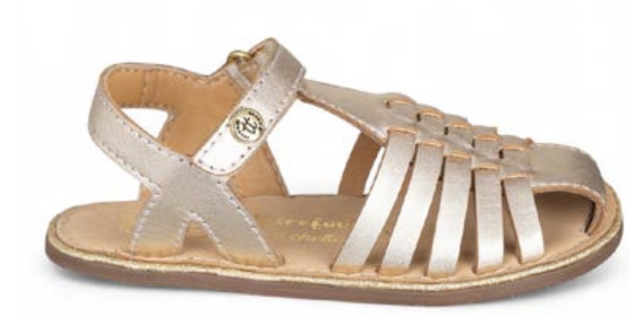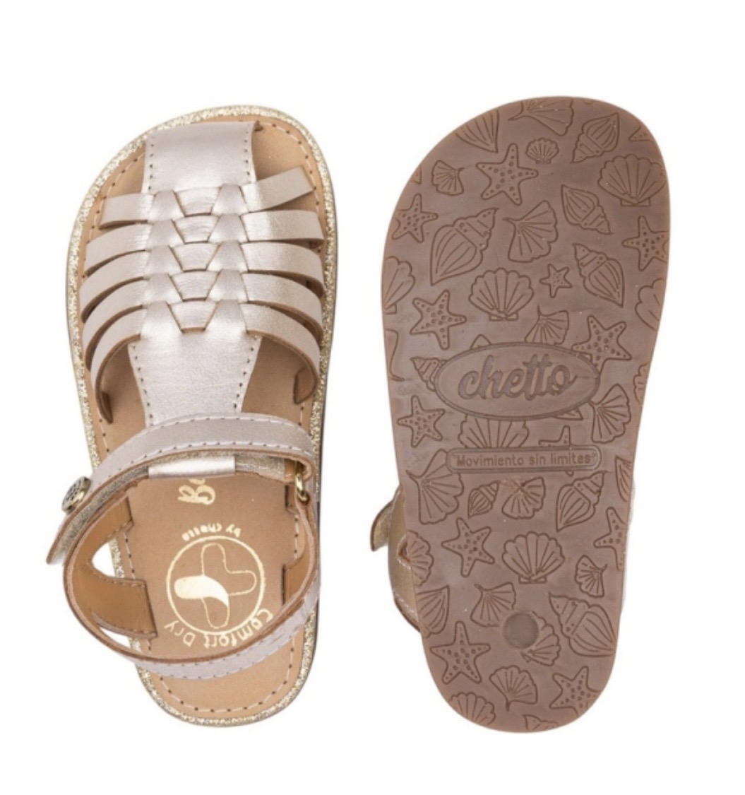 Sandalia tipo cangrejera en color dorado con horma y respetuosa , fabricada en piel por la marca Chetto