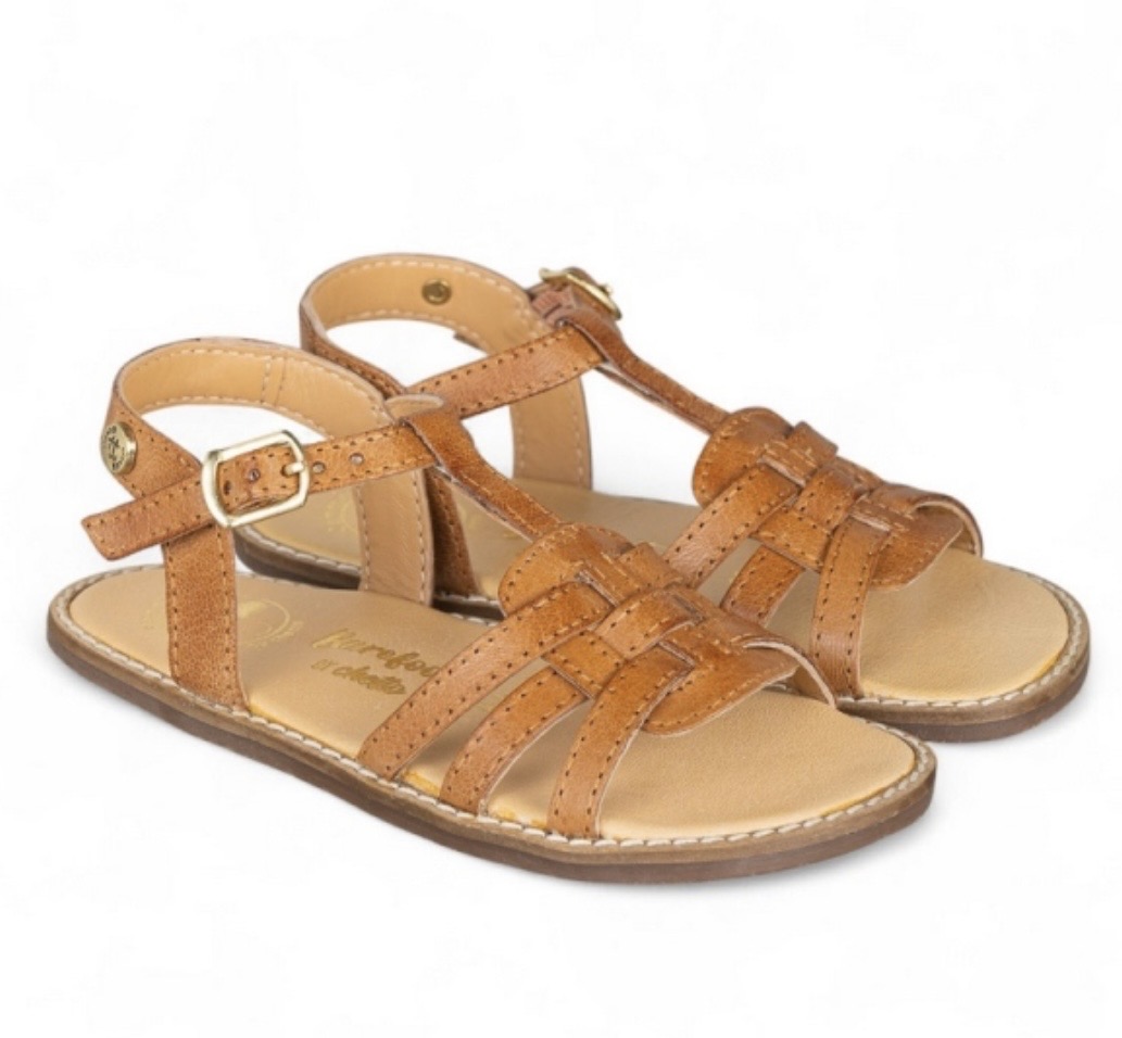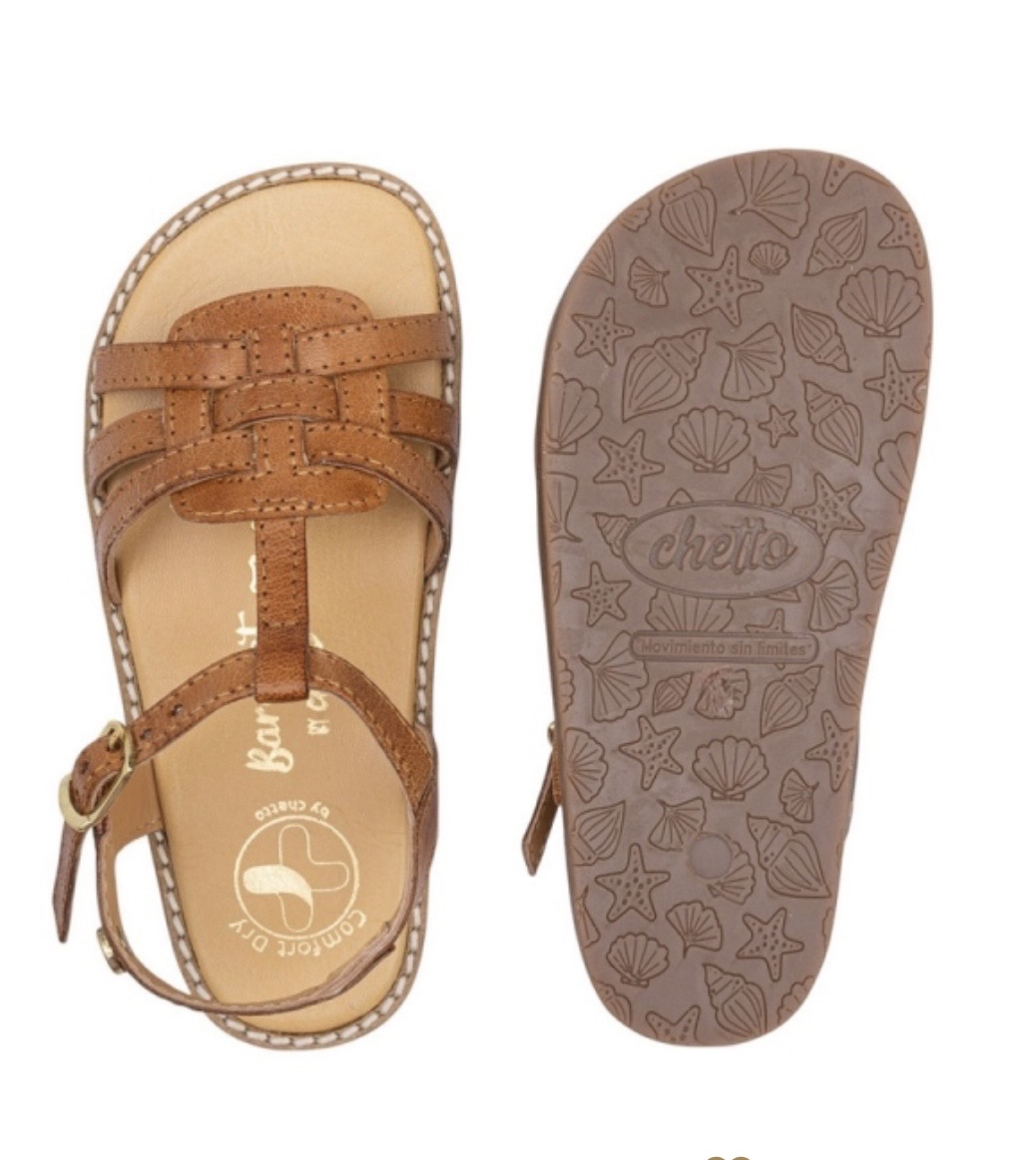 Sandalia con corma barfoot, fabricada en piel cuero .