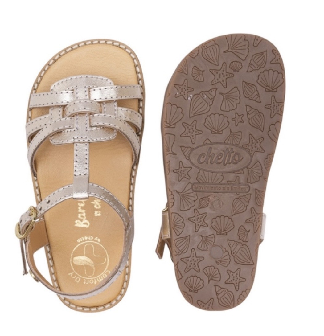 Sandalia, fabricada en piel por CHETTO, con horma Barefoot y respetuosa, ajuste con hebilla .