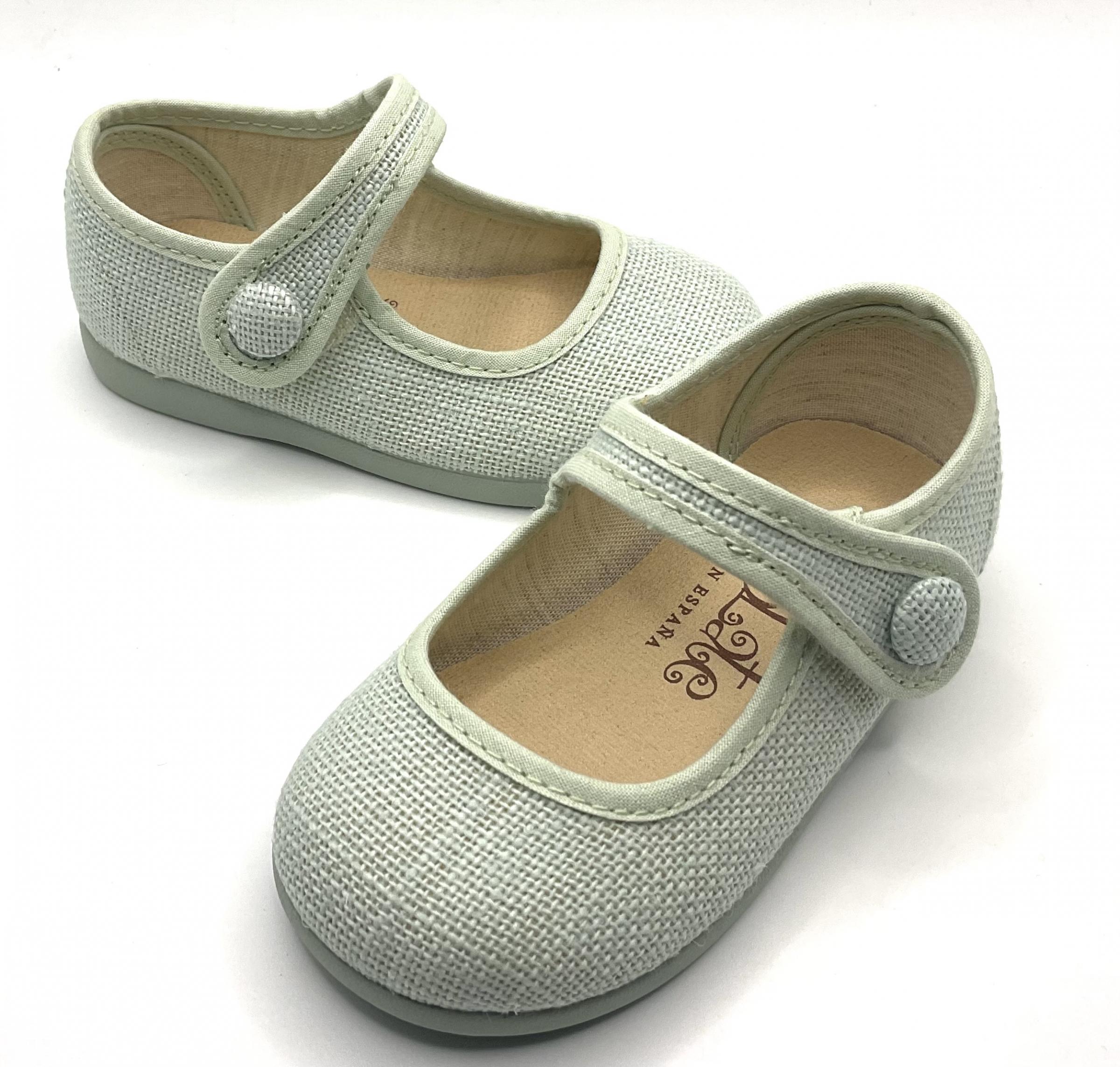Merceditas fabricadas en lino de color salvia
