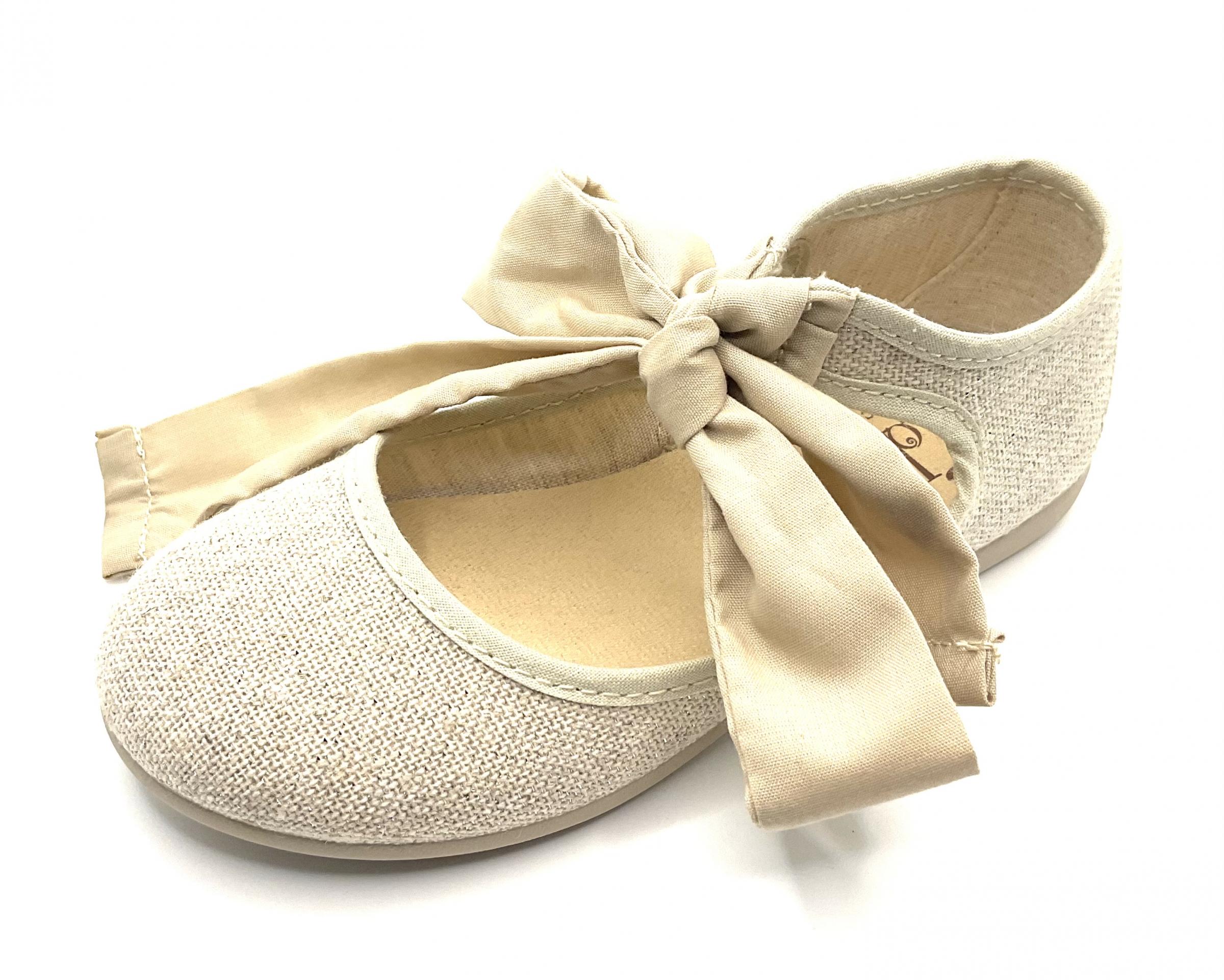 Angelito fabricado en lino natural, metalizado, con ajuste y lazada en el tobillo de Batista, color a tono con el resto del zapato
