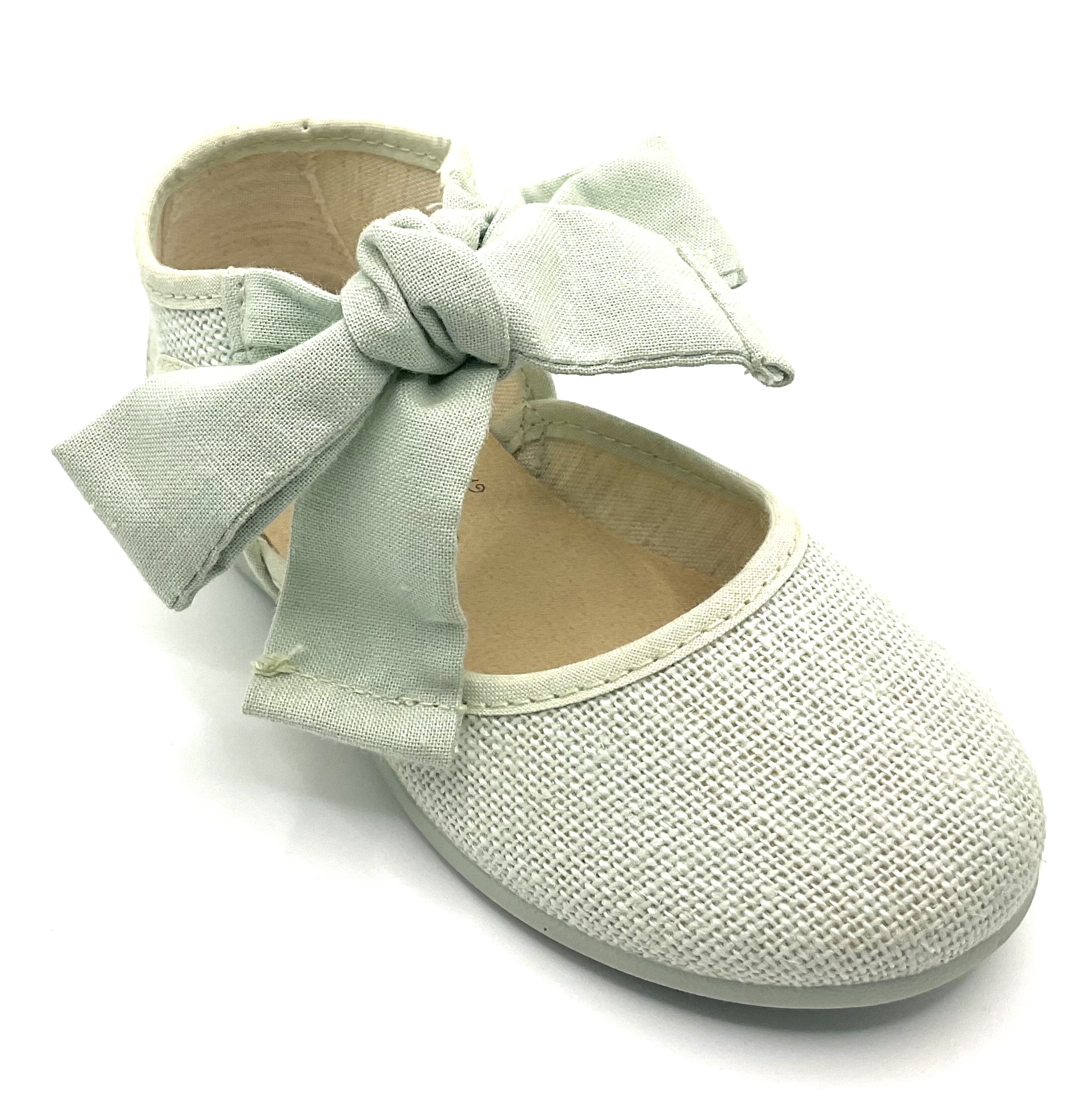 Angelito , fabricado en lino de color salvia, con ajuste de lazada al tobillo en Batista también verde salvia.