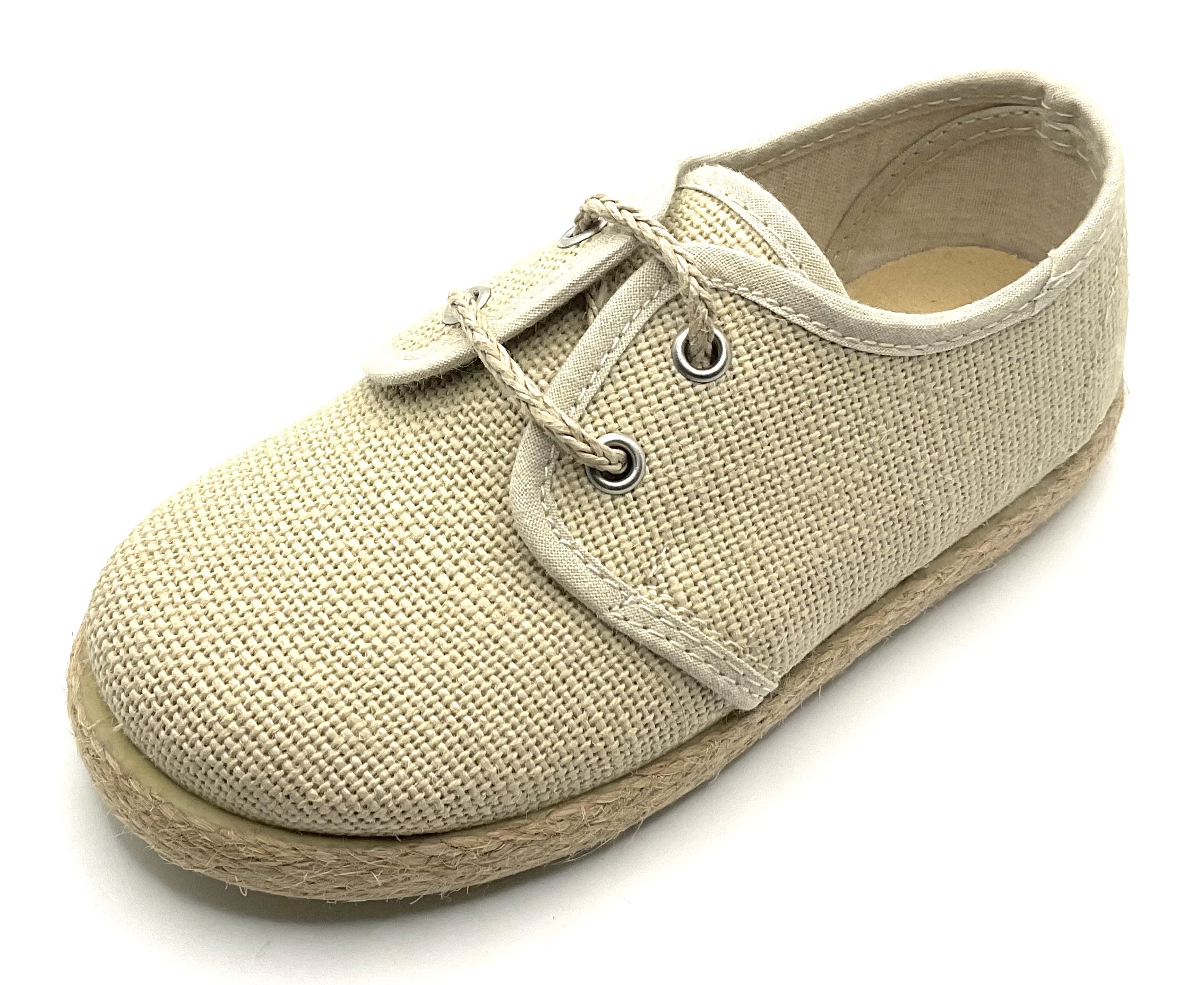 Blucher de niño en lino de algodón hielo, ajuste con cordones, piso de goma con el embellecedor de Esparto