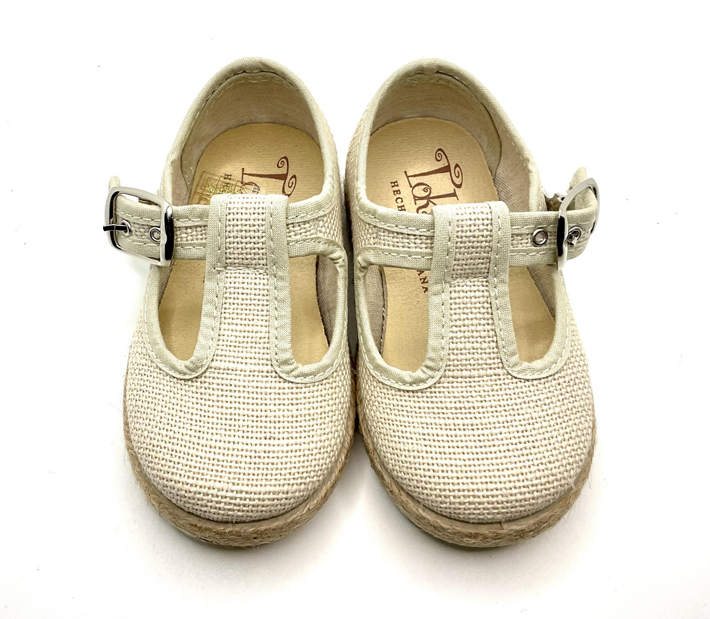 Pepito de lino, en color beis, con piso de goma y