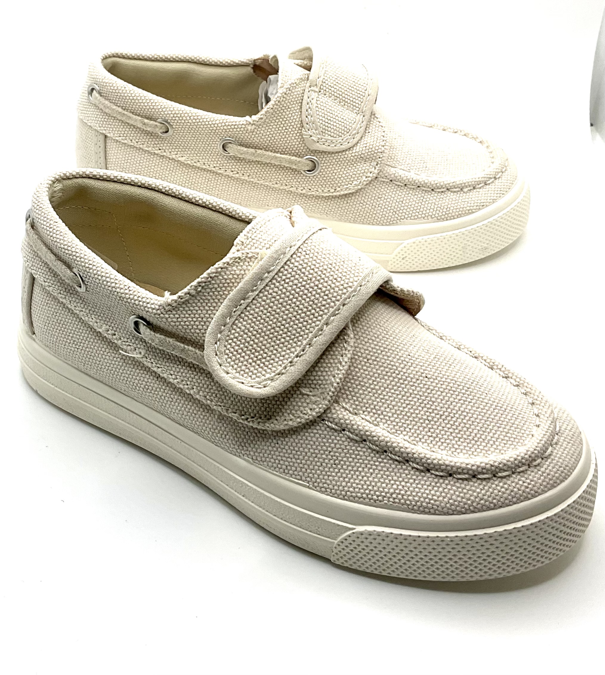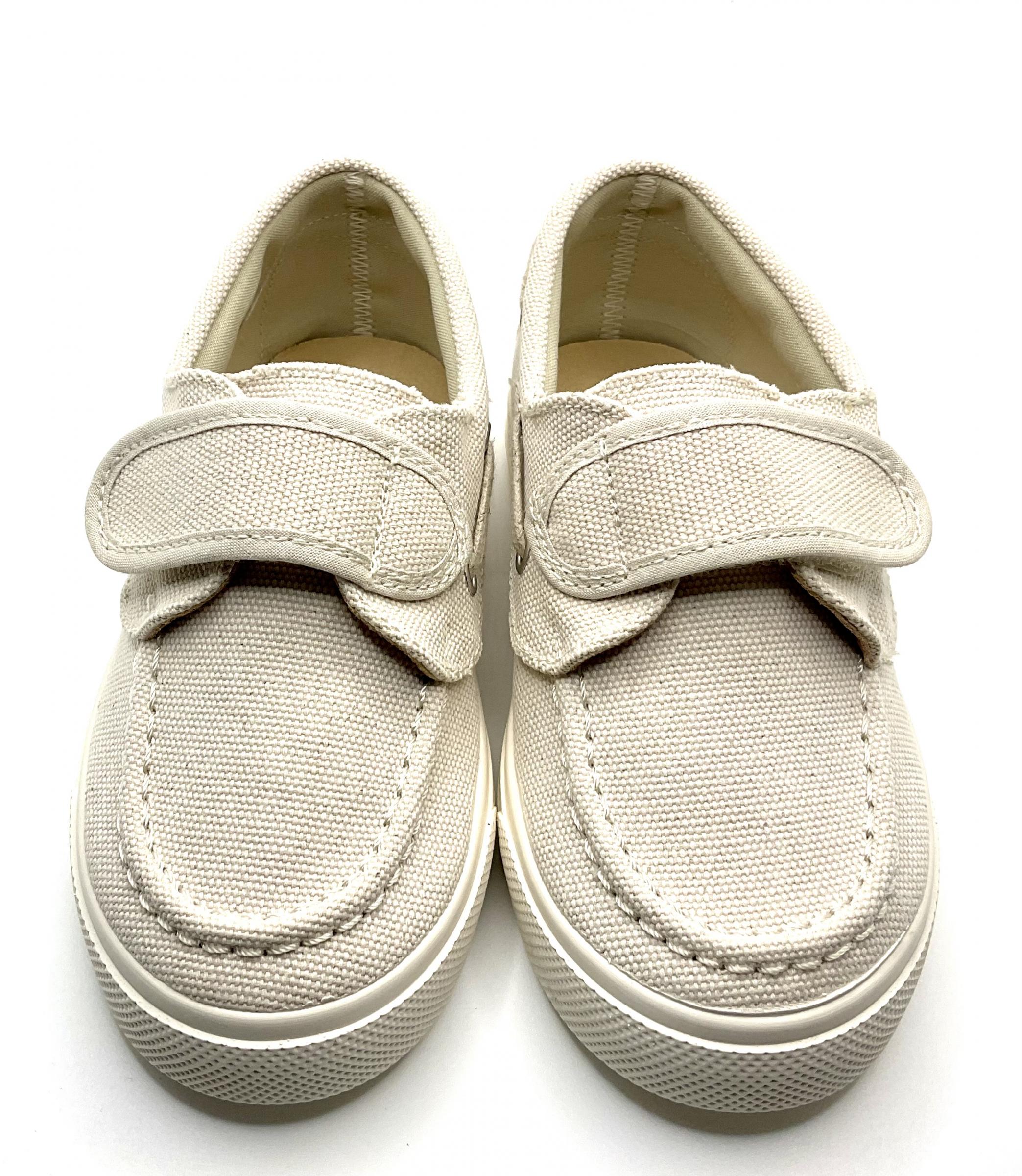 Nautico de lona crudo con ajuste de Velcro, piso de goma total totalmente lavable.