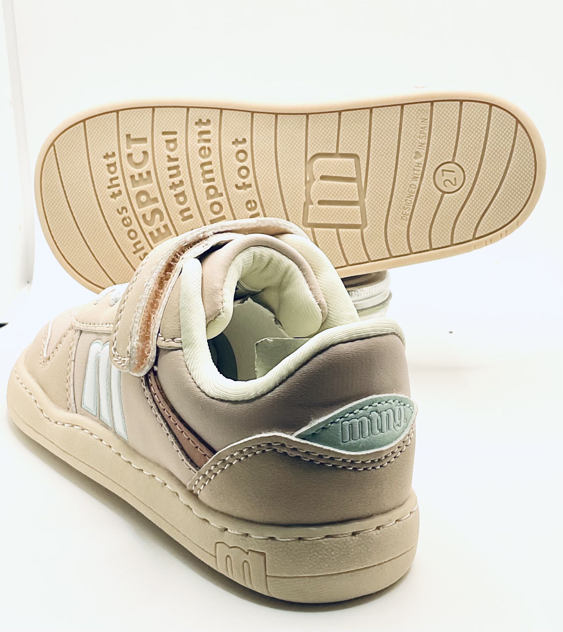 Deportiva Barefoot de la marca Mustang fabricada en piel en colores Nude, cierre de velcro, cordones, elásticos, ligeras y muy flexibles cero Drop y cero contrafuertes.