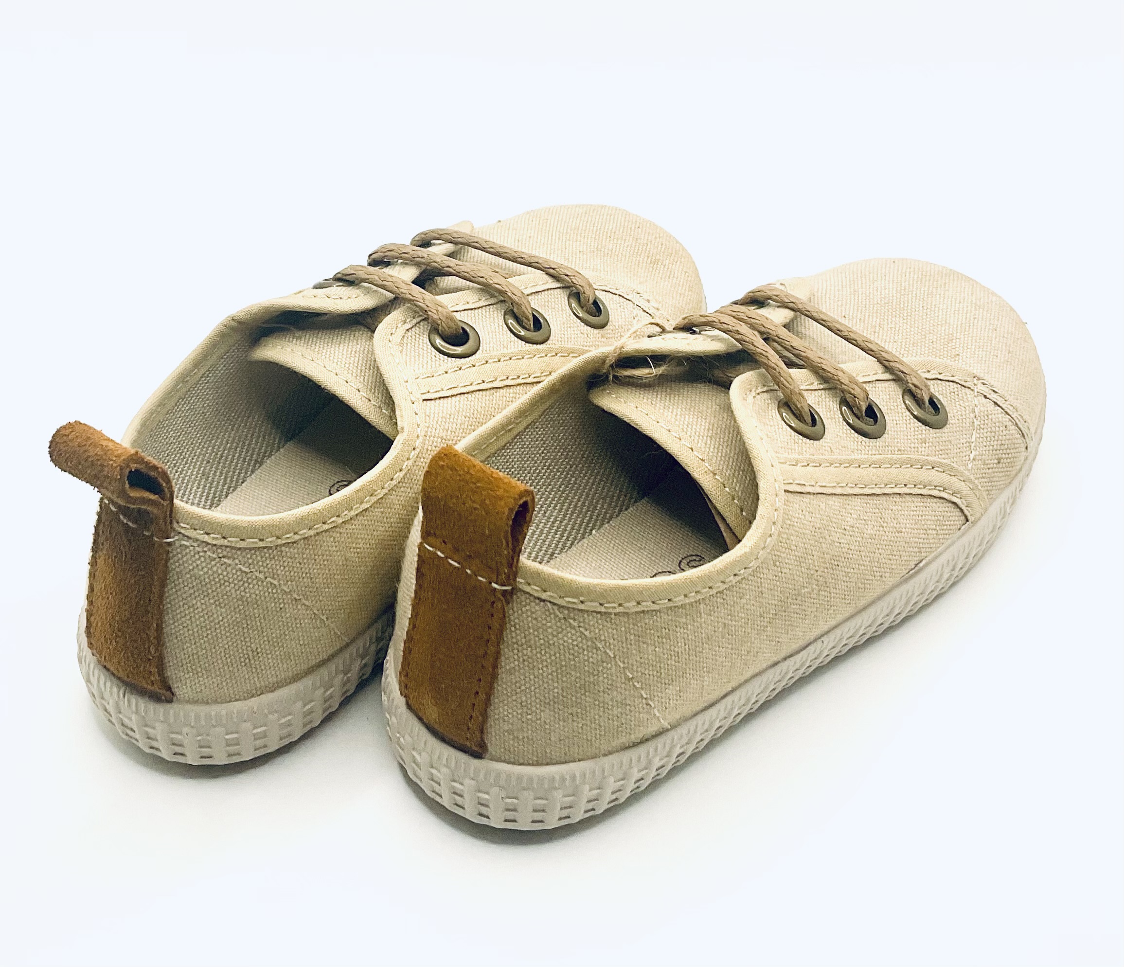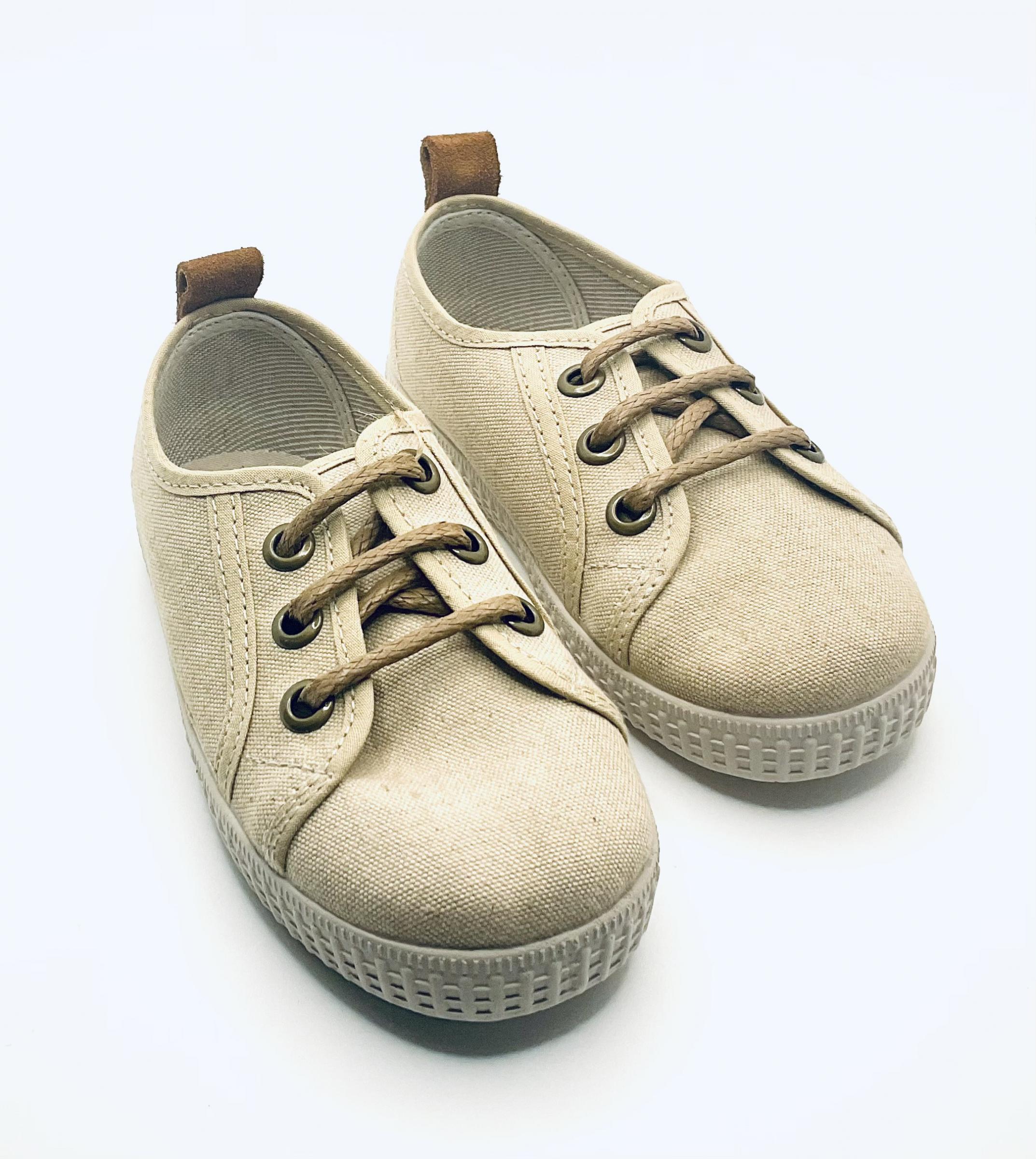 Zapato Blucher tipo Tenis con piso de goma de la marca chocolate, fabricado en lona lavada den tono piedra, con ajuste de cordones ,muy ligeros y muy flexibles arreglados y a la vez desenfadados ideales para todos los días.