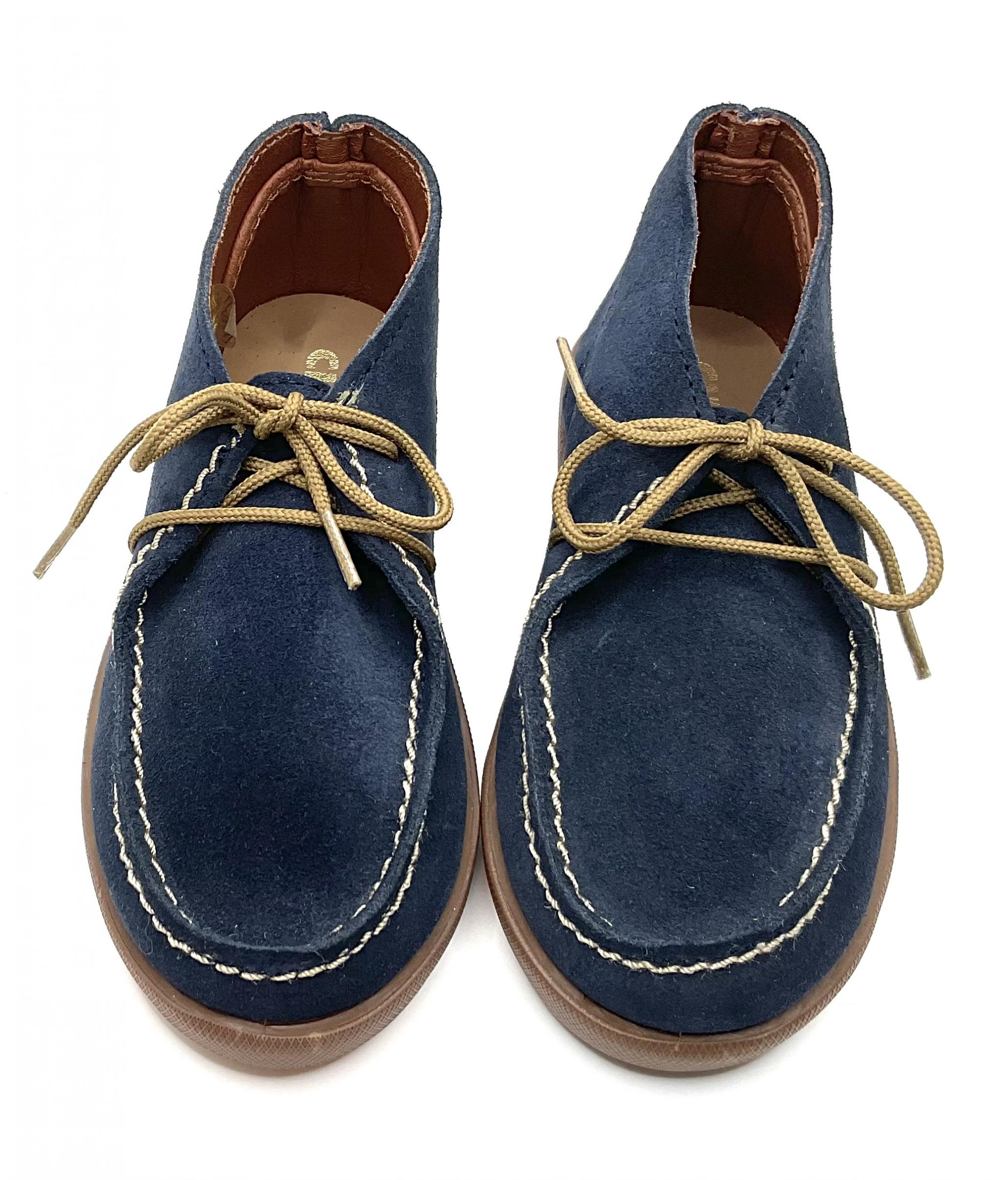 Zapato Blucher, en piel de ante color marino, ajuste con cordones, muy ligero y flexible