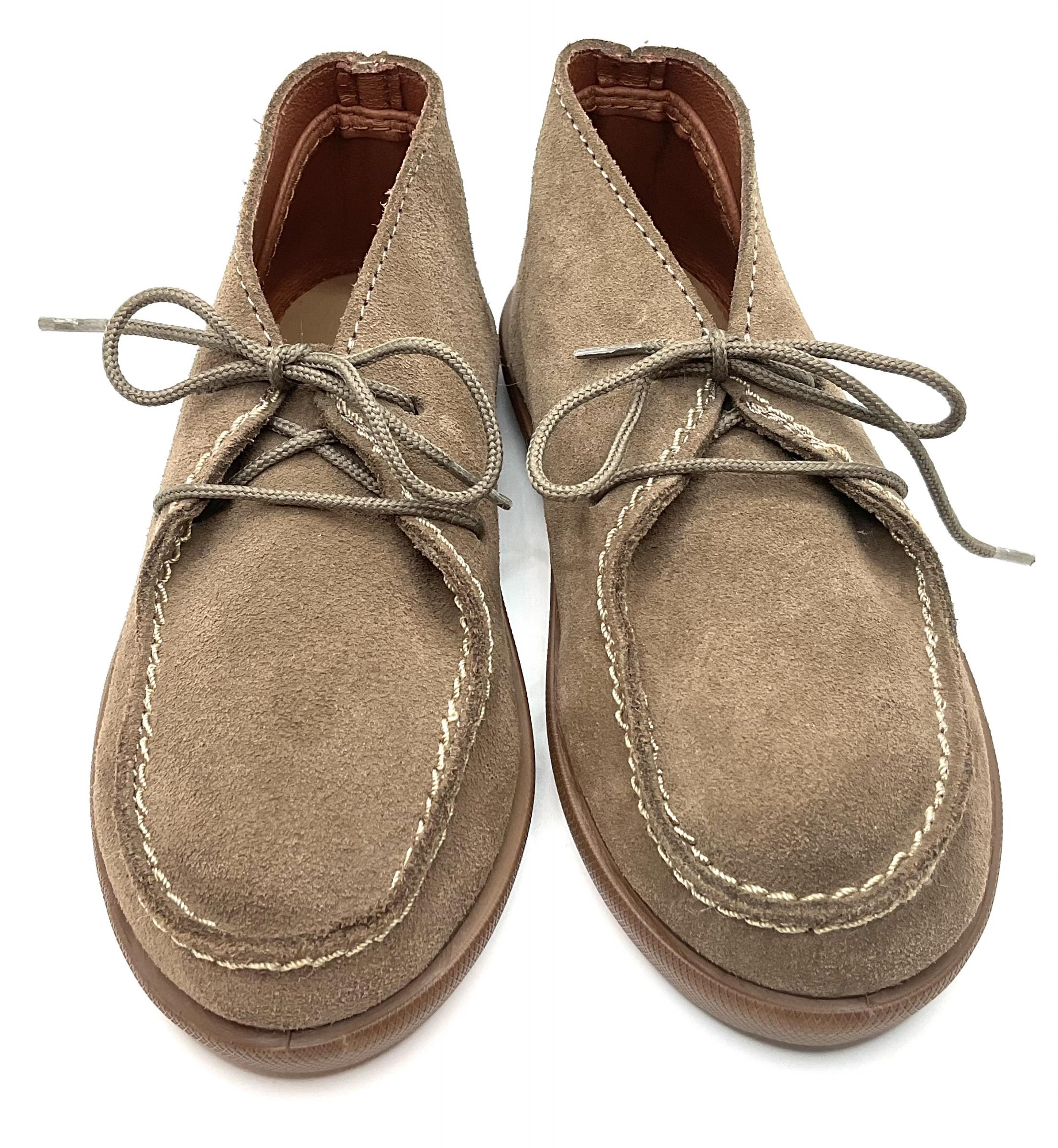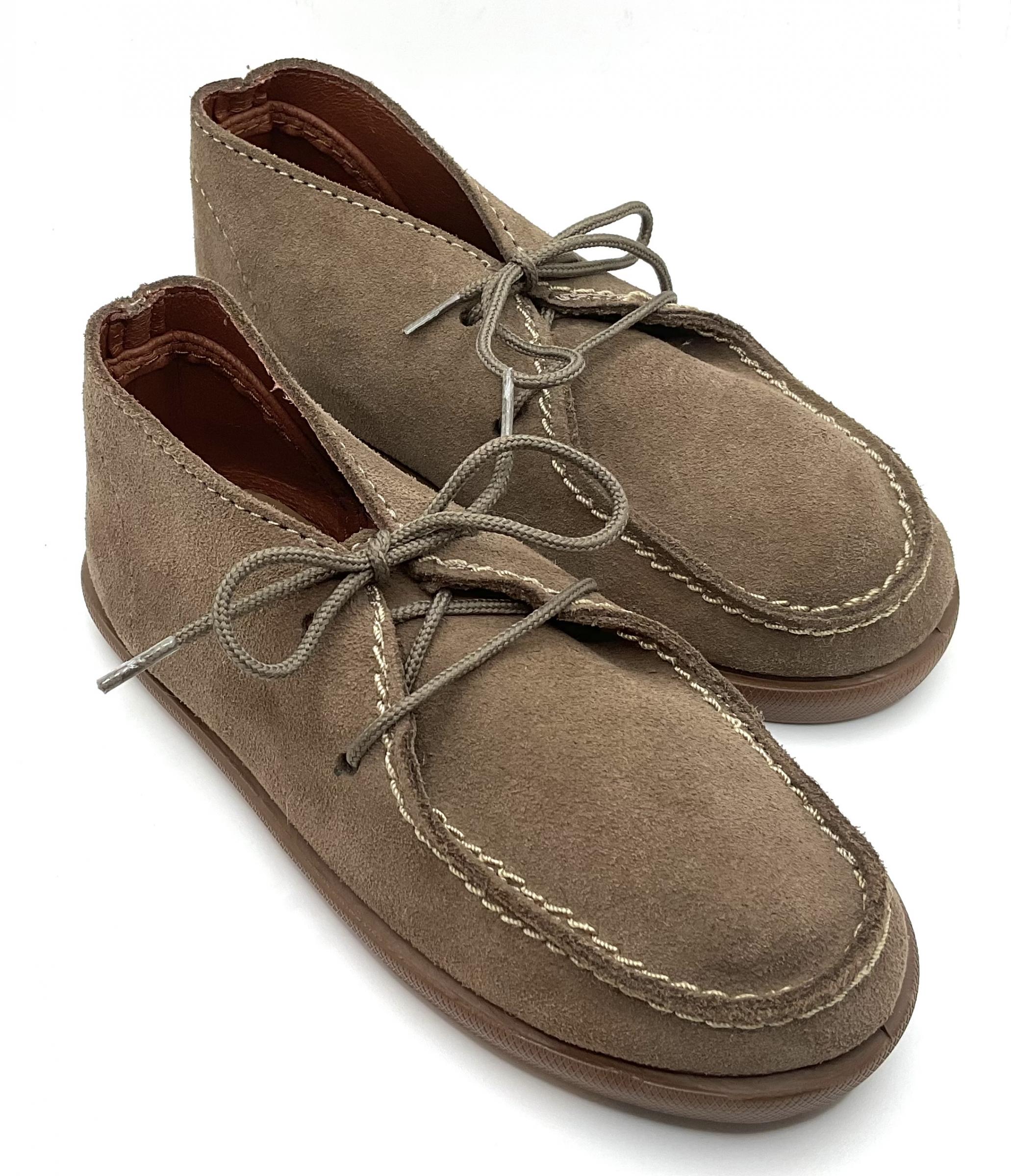 Blucher, para niños, con cierre de cordón, fabricado en piel de ante, en color taupe, muy ligero y muy flexible.
