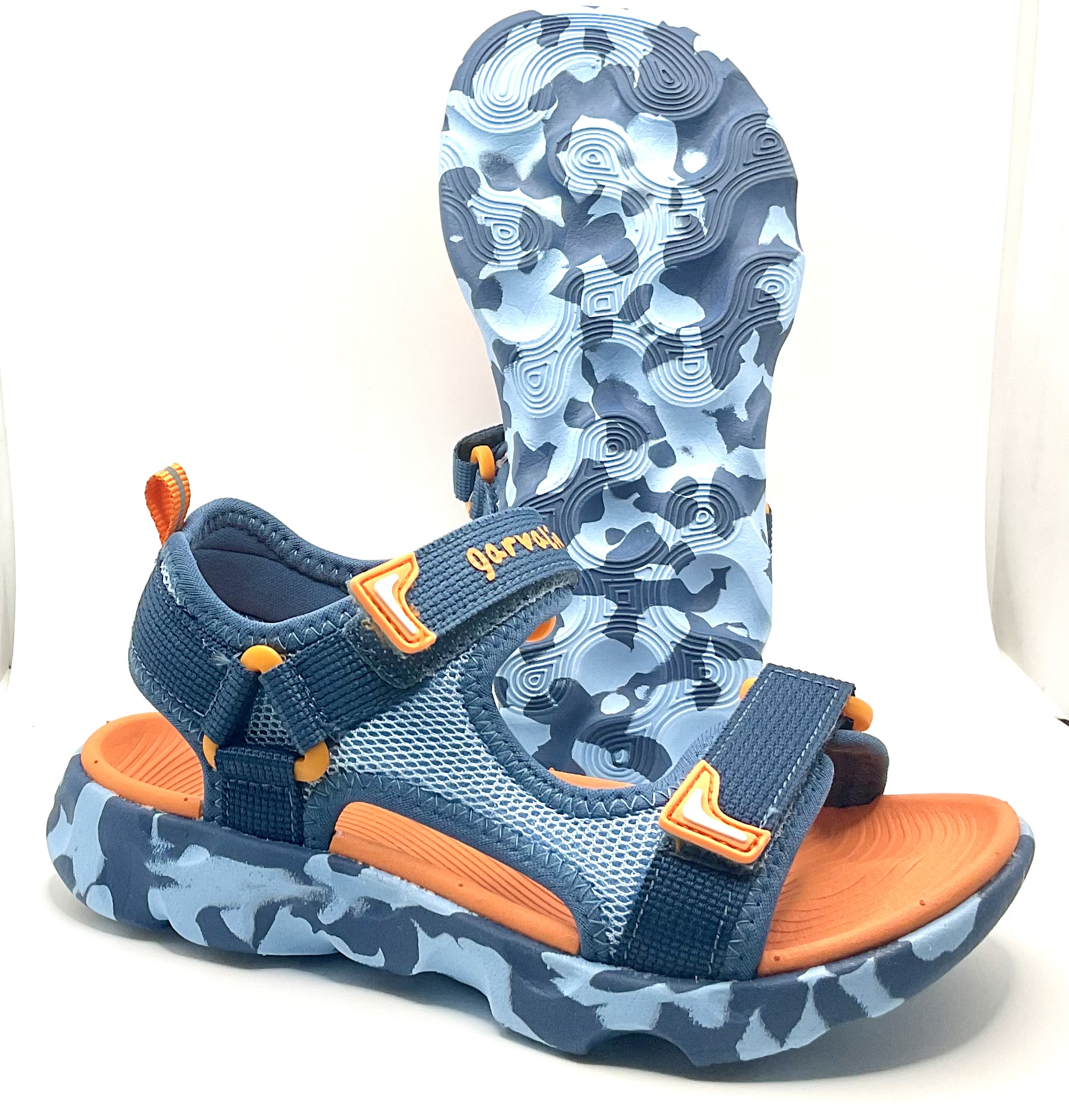 Sandalia al estilo californiana de la marca Garvalin con piso impermeable y Antideslizante ajuste con doble velcro. Se puede lavar y son estupendas para los días de campamento y Tiempo libre, Muy ligeras, no