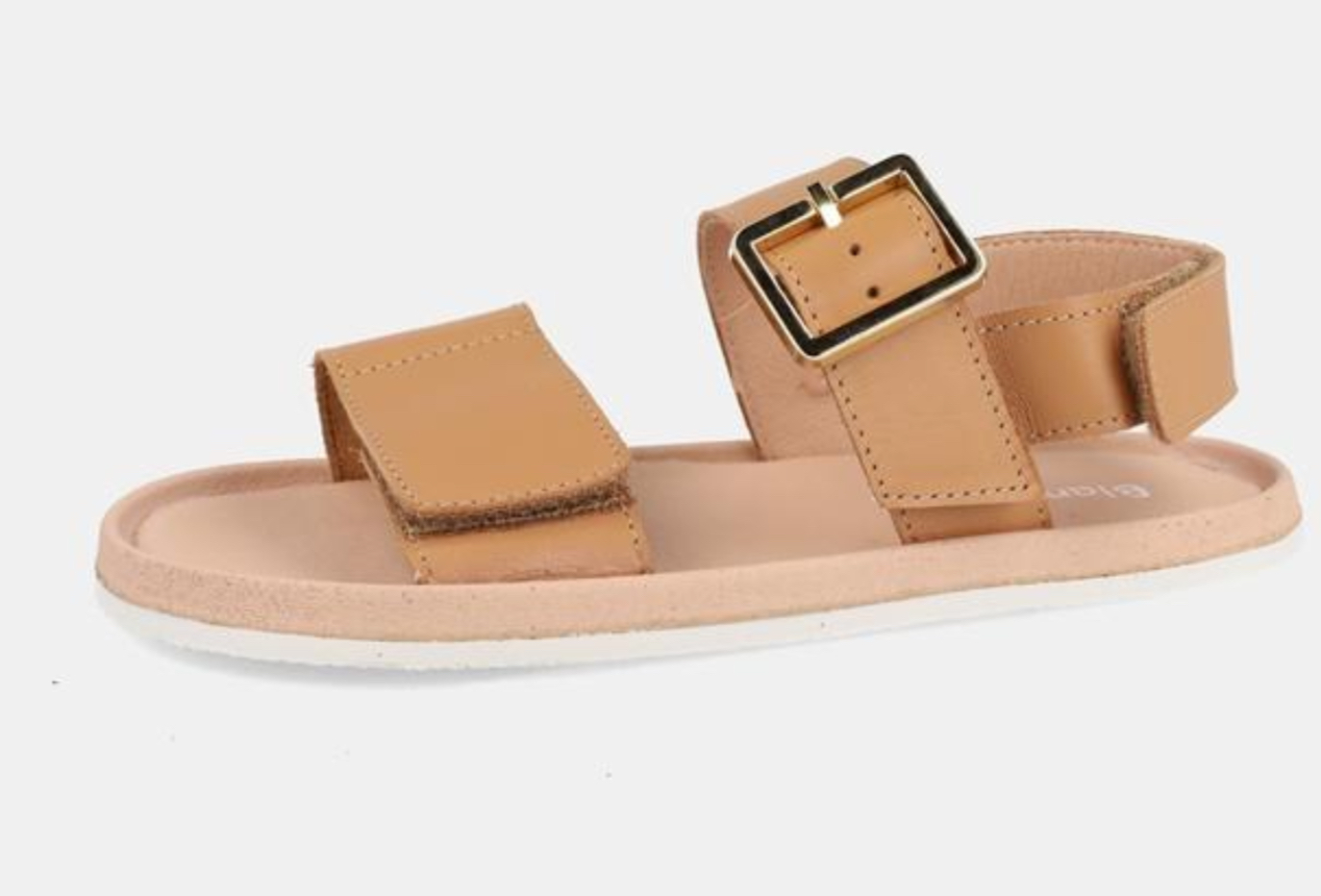 Sandalia de Blanditos, con horma completamente respetuosa, fabricada en piel de color cuero, con ajuste de velcro, en los dedos, cierre de vi en el empeine y ajuste de velcro en el talón.