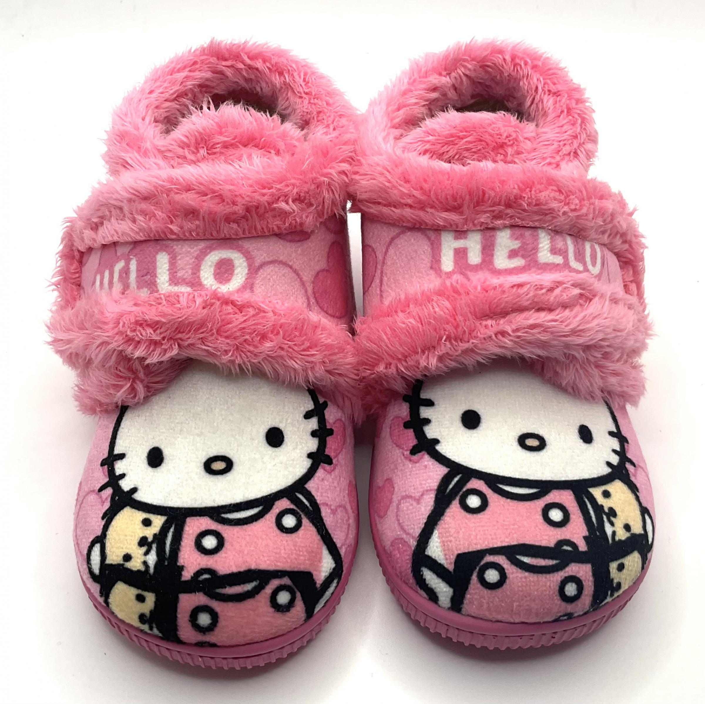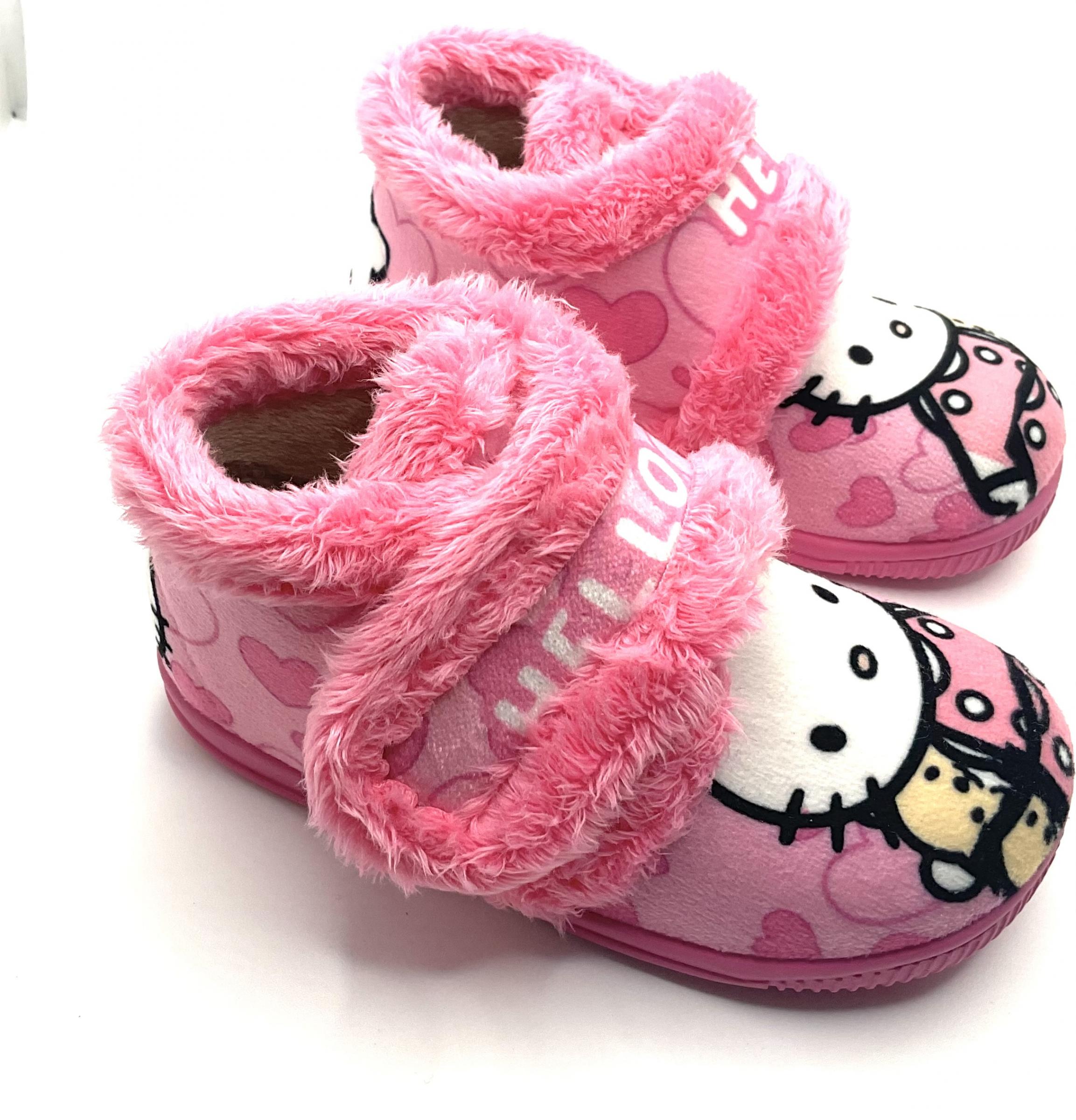 Zapatillas de estar por casa de Hello Kitty, con cierre de Velcro en color rosa, fabricadas en una gamuza muy