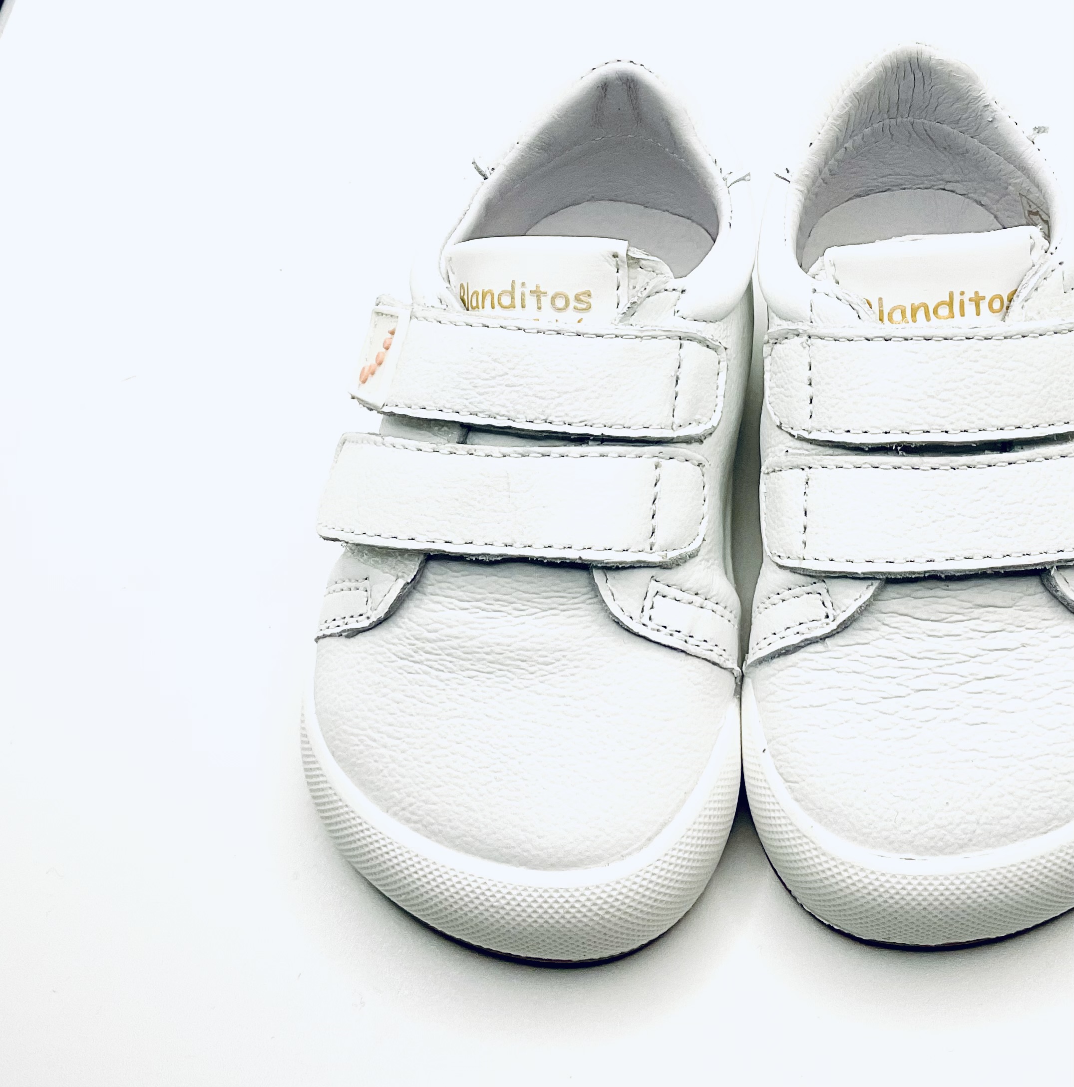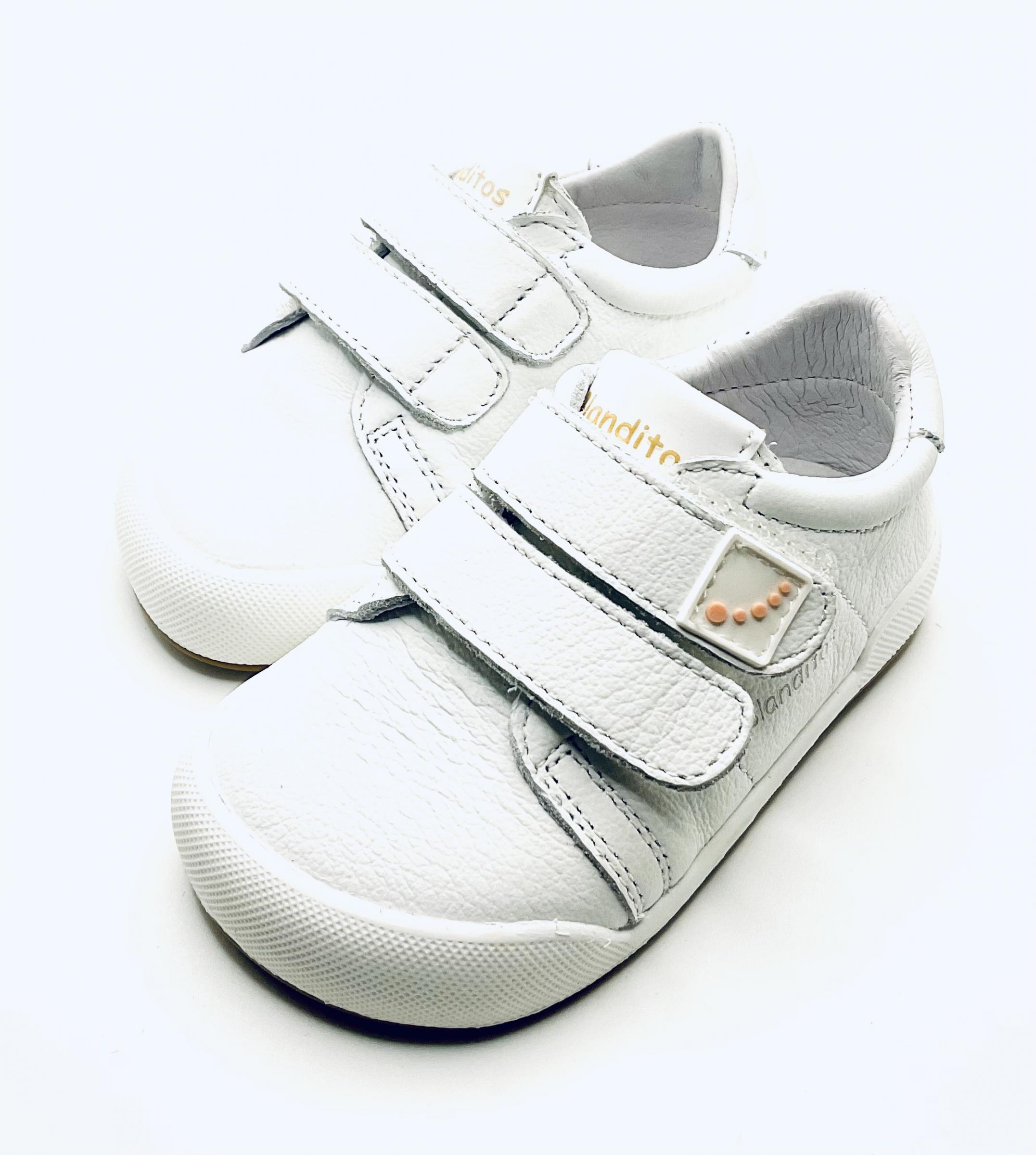 Zapato deportivo blanco, con ajuste de doble Velcro, horma respetuosa y Barefoot,.
