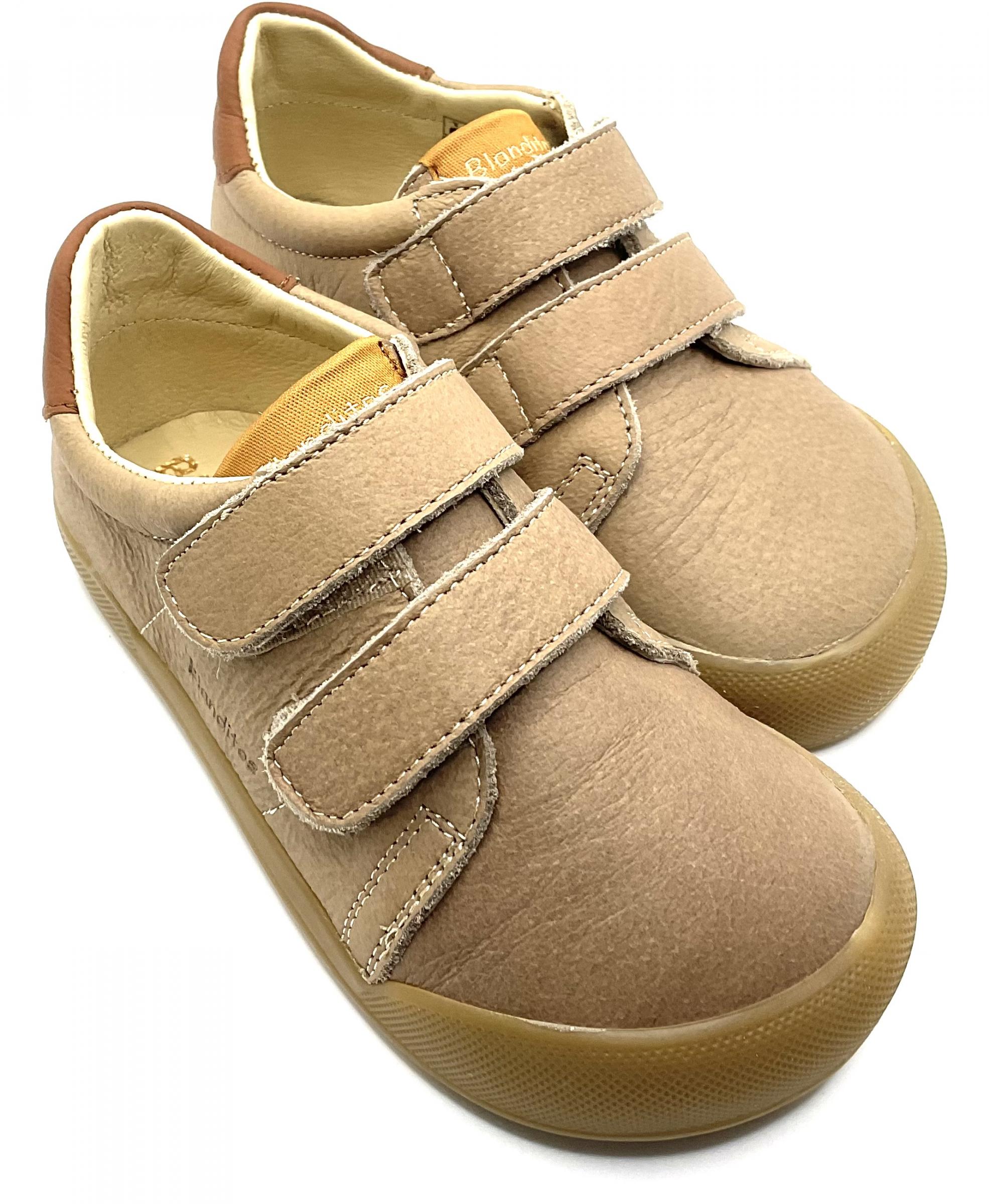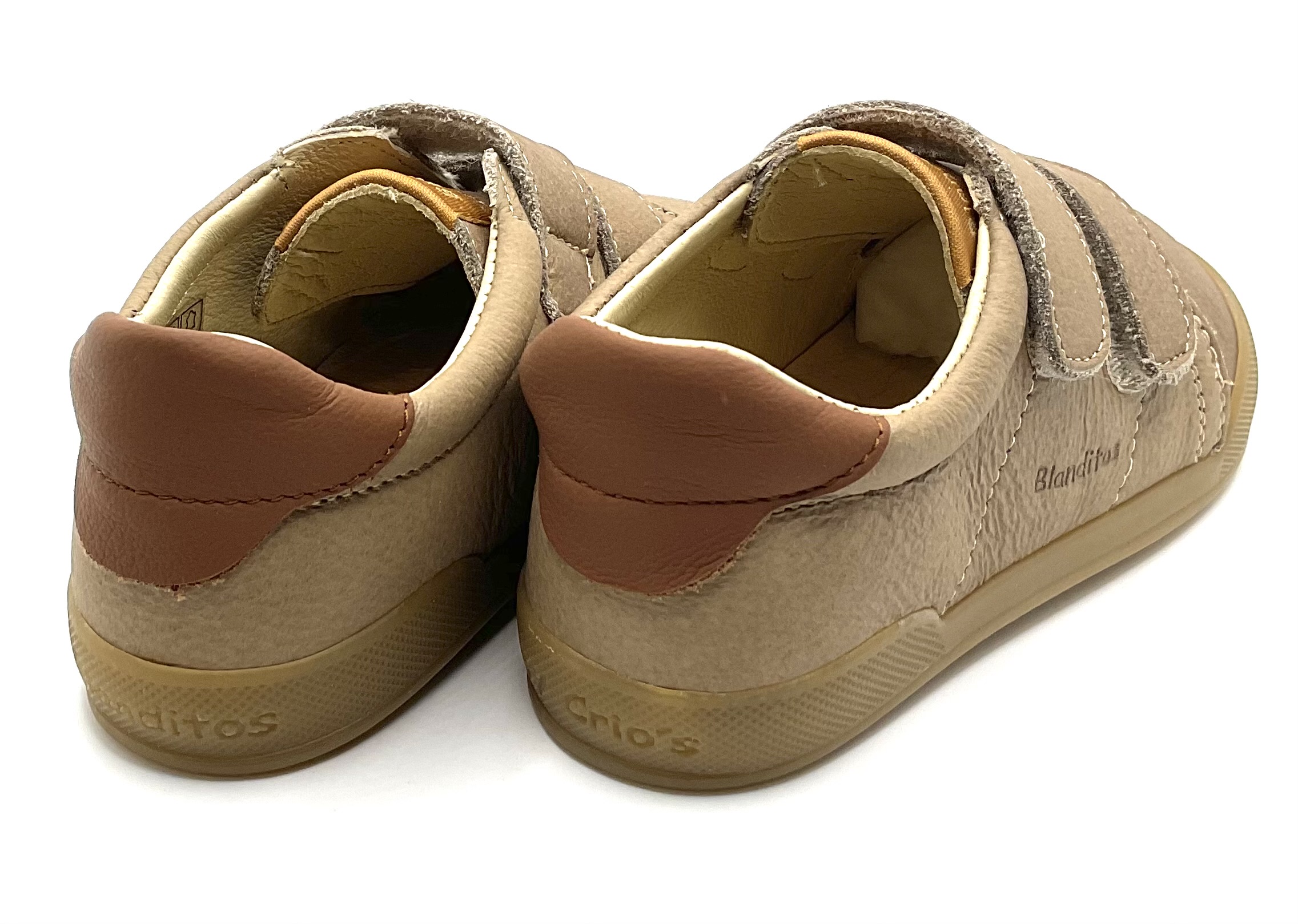 Zapato respetuoso en color arena de la marca Blanditos, con puntera reforzada, totalmente ligero y flexible, sin contrafuertes, con cero Drop, plantillas, extraíble y ajuste con doble velcro