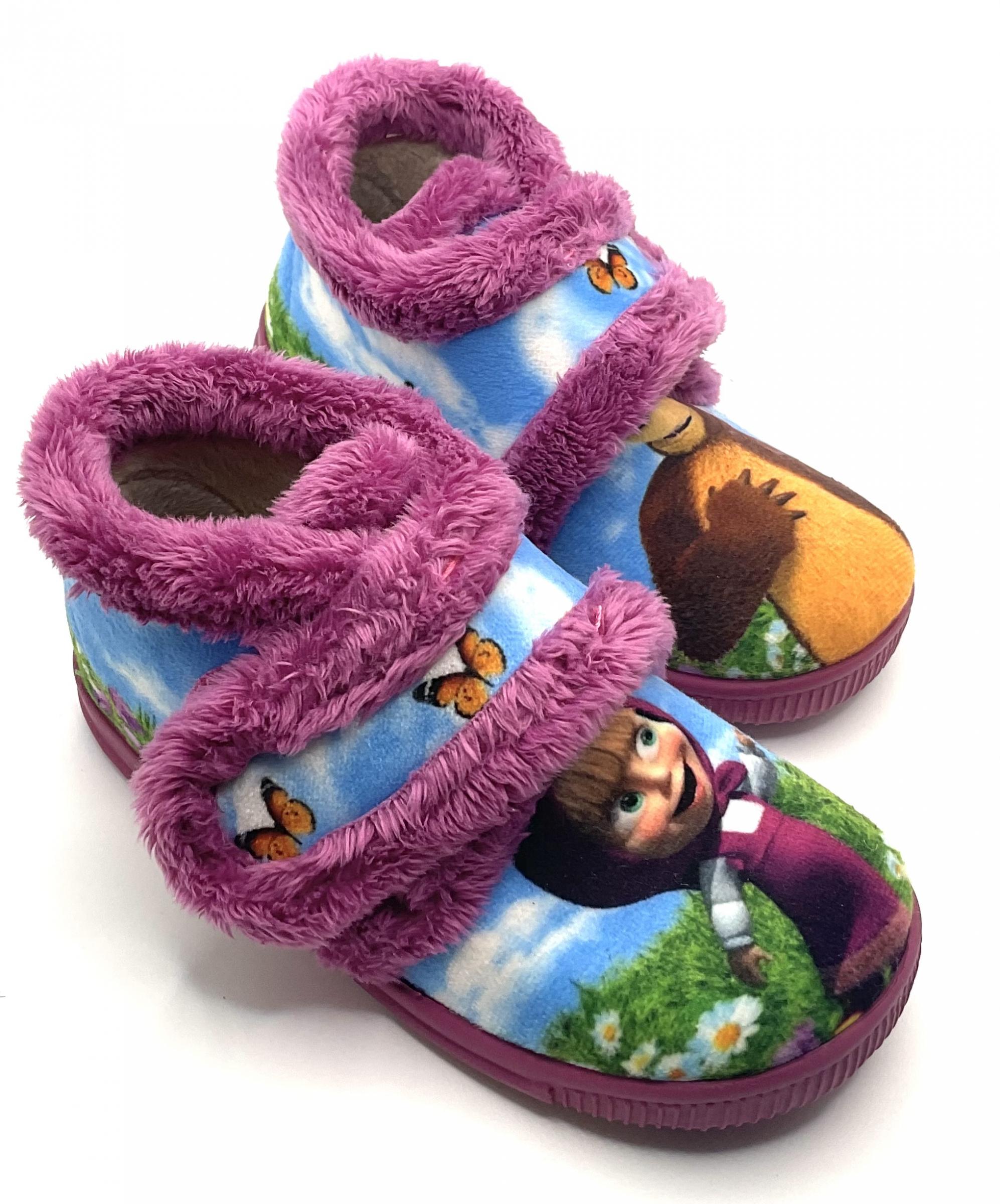 Zapatillas de estar en casa en tono frambuesa, fabricadas en una gamuza muy calentita, con cierre de Velcro, ligeras y muy flexibles, libres de contrafuerte y costuras en el interior