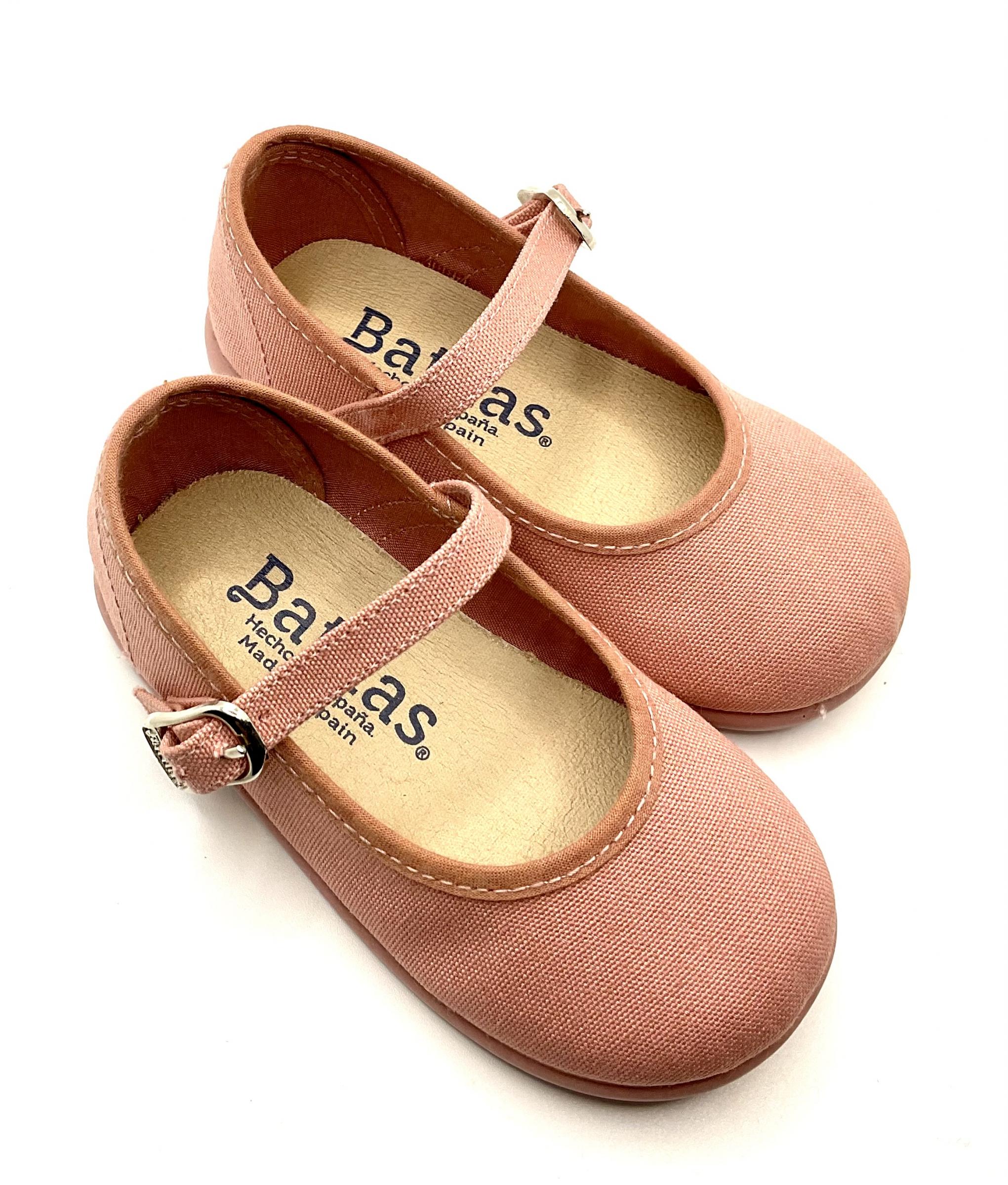 Merceditas, fabricadas en lona de algodón rosa por la marca Batilas, con ajuste de Villa, piso, a tono con