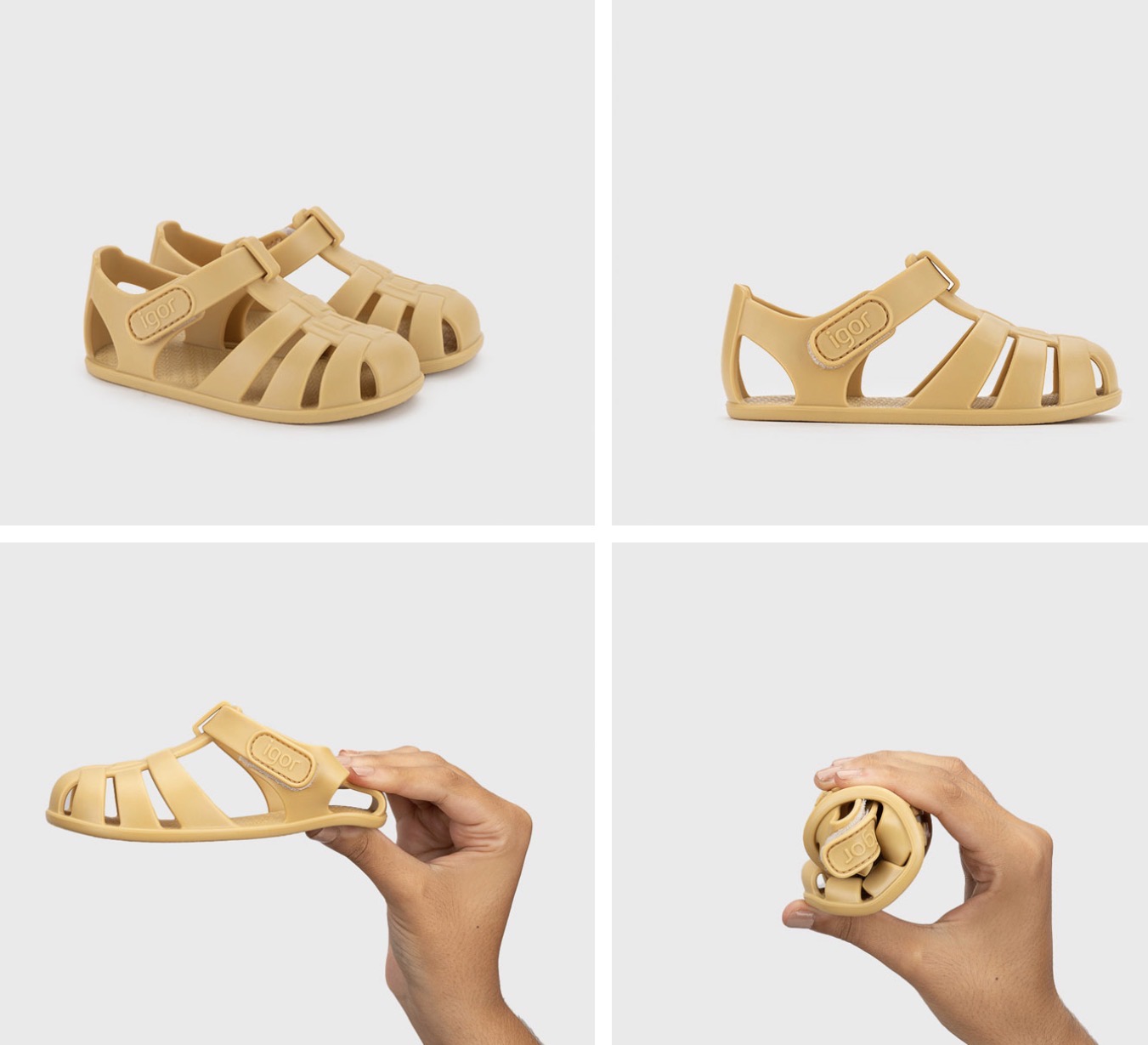 Cangrejera diseñada en concepto barefoot medium, cero drop, flexible y blandita, fabricada con al menos un 50% de pvc reciclado libre de ftalatos y cierre adherente.