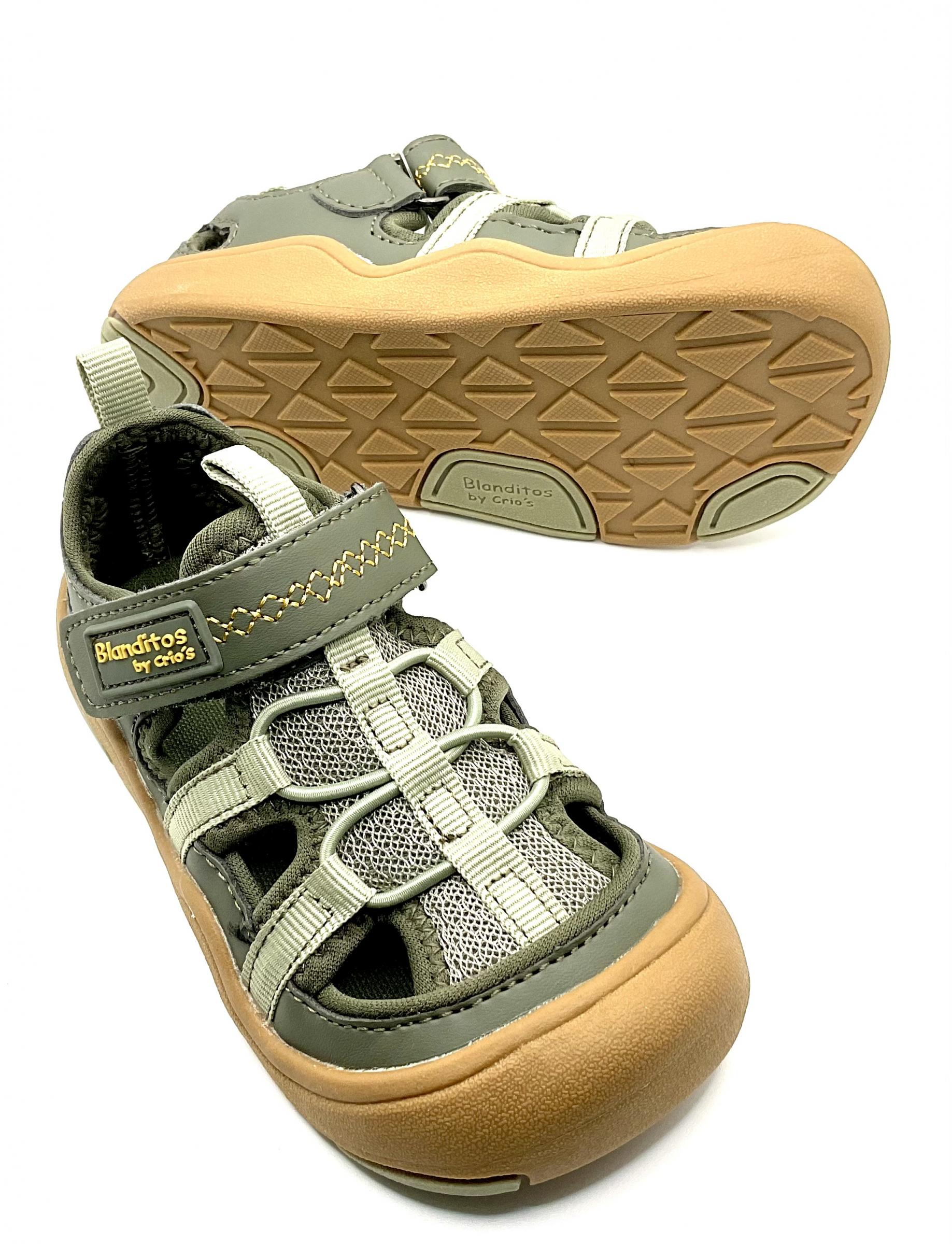 Sandalia deportiva con horma Barefoot, de la marca Blanditos, con puntera reforzada y ajuste con velcro. Plantilla extraíble, cero Drop, y muy flexibles en el metatarso.