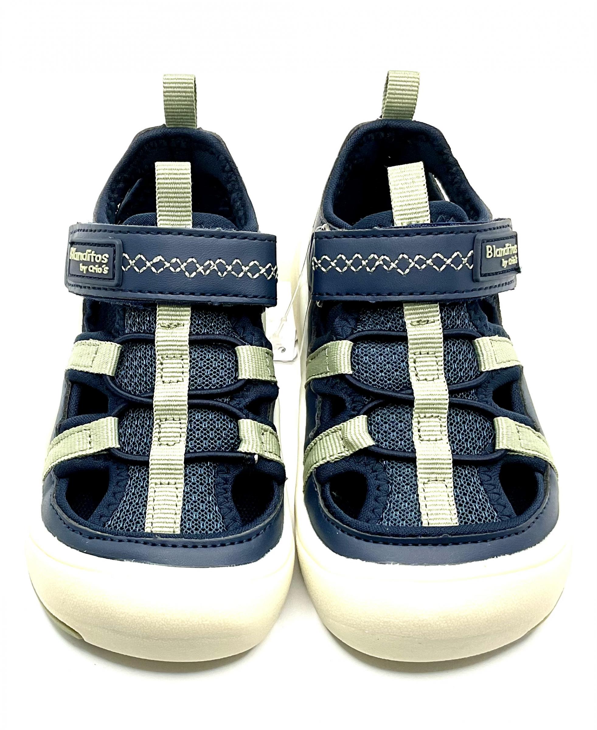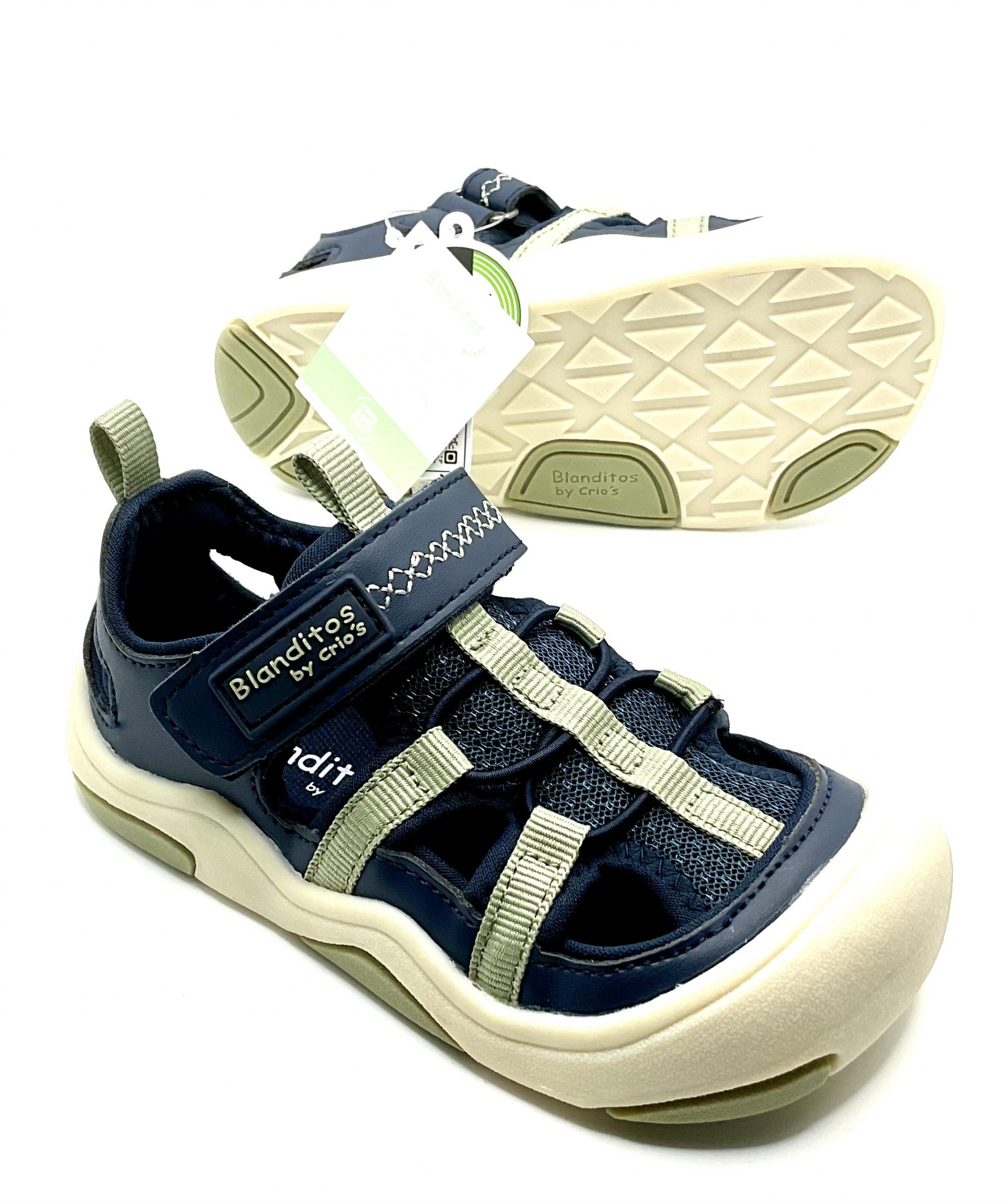 Sandalia con una horma Barefoot, muy deportiva, ajuste con cierre de Velcro, puntera reforzada, muy flexible en el metatarso, con plantilla extraíble y sin Drop.