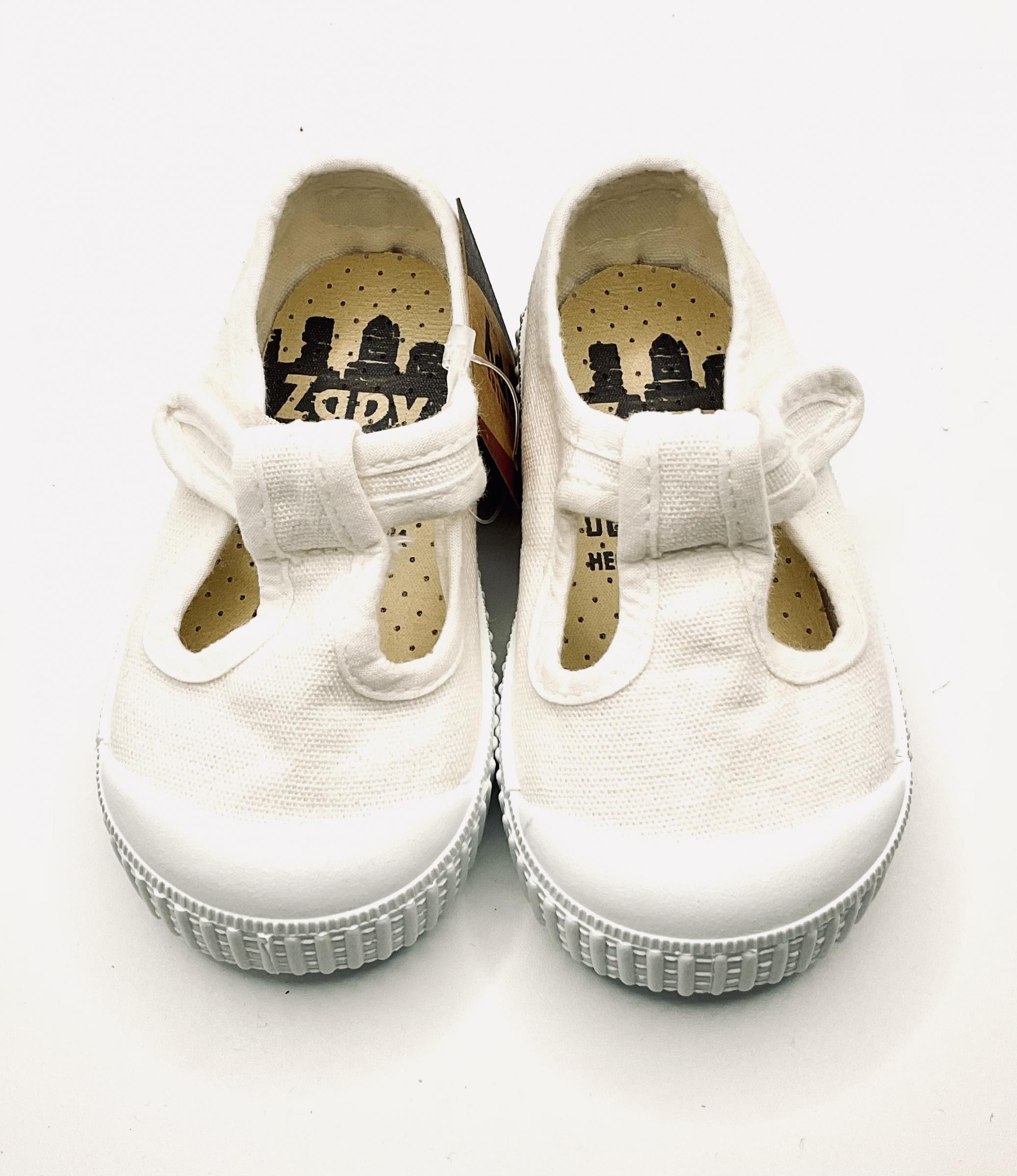 Pepito de lona de la marca Zappy, en color blanco, con puntera reforzada, ligeros y muy flexibles y con cierre de Velcro