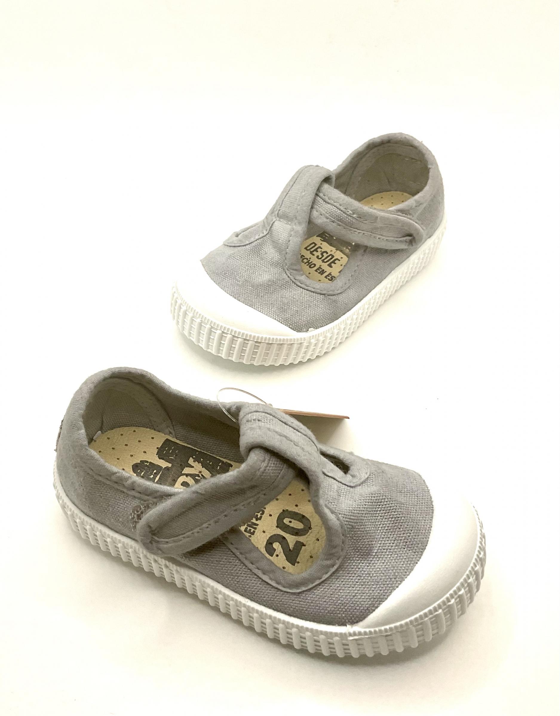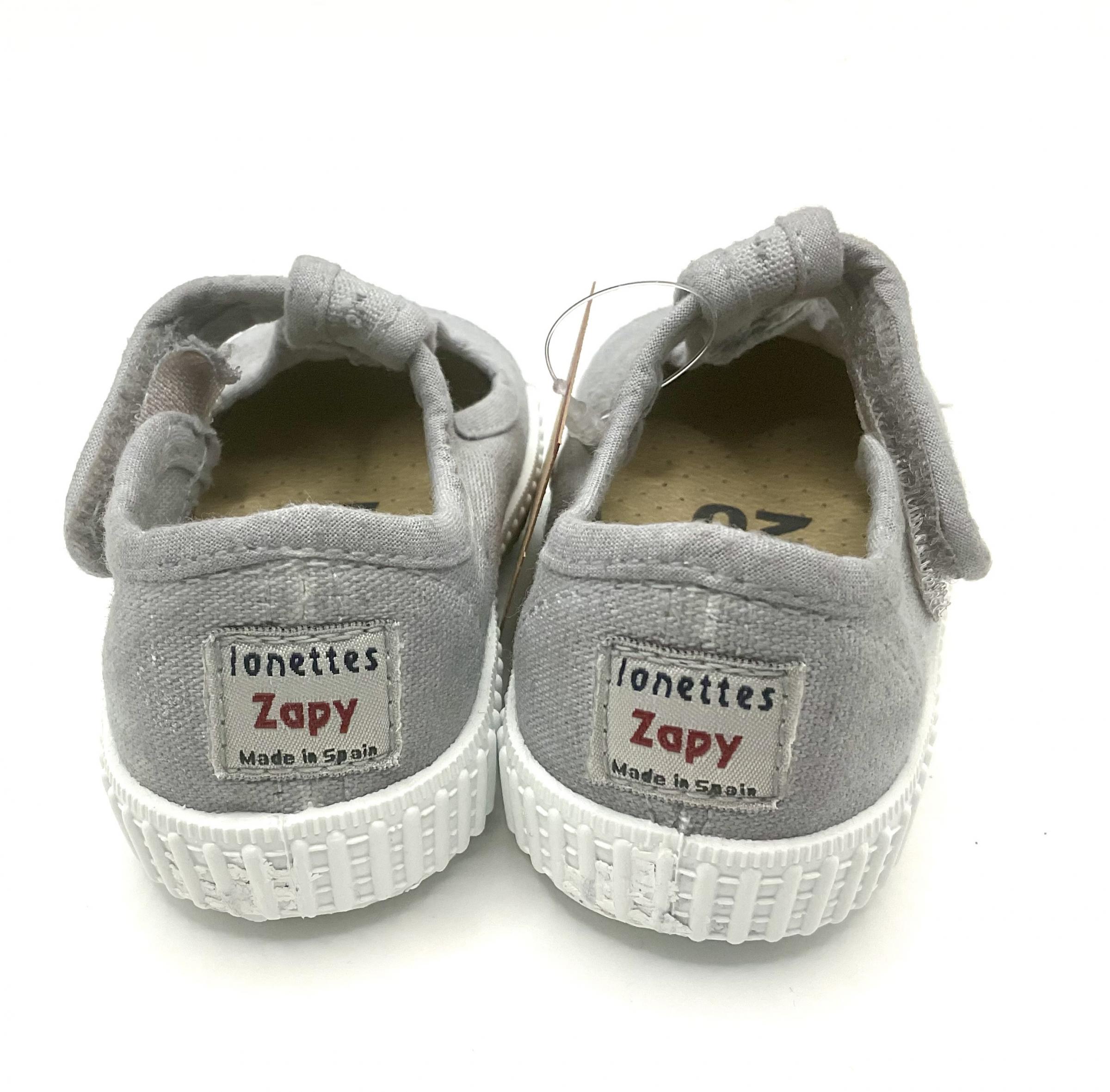 Pepito, fabricado por la marca Zappy en loneta pre lavada de color gris, con puntera reforzada, plantilla extraíble, sin contrafuertes y con cero Drop, muy ligeras y
